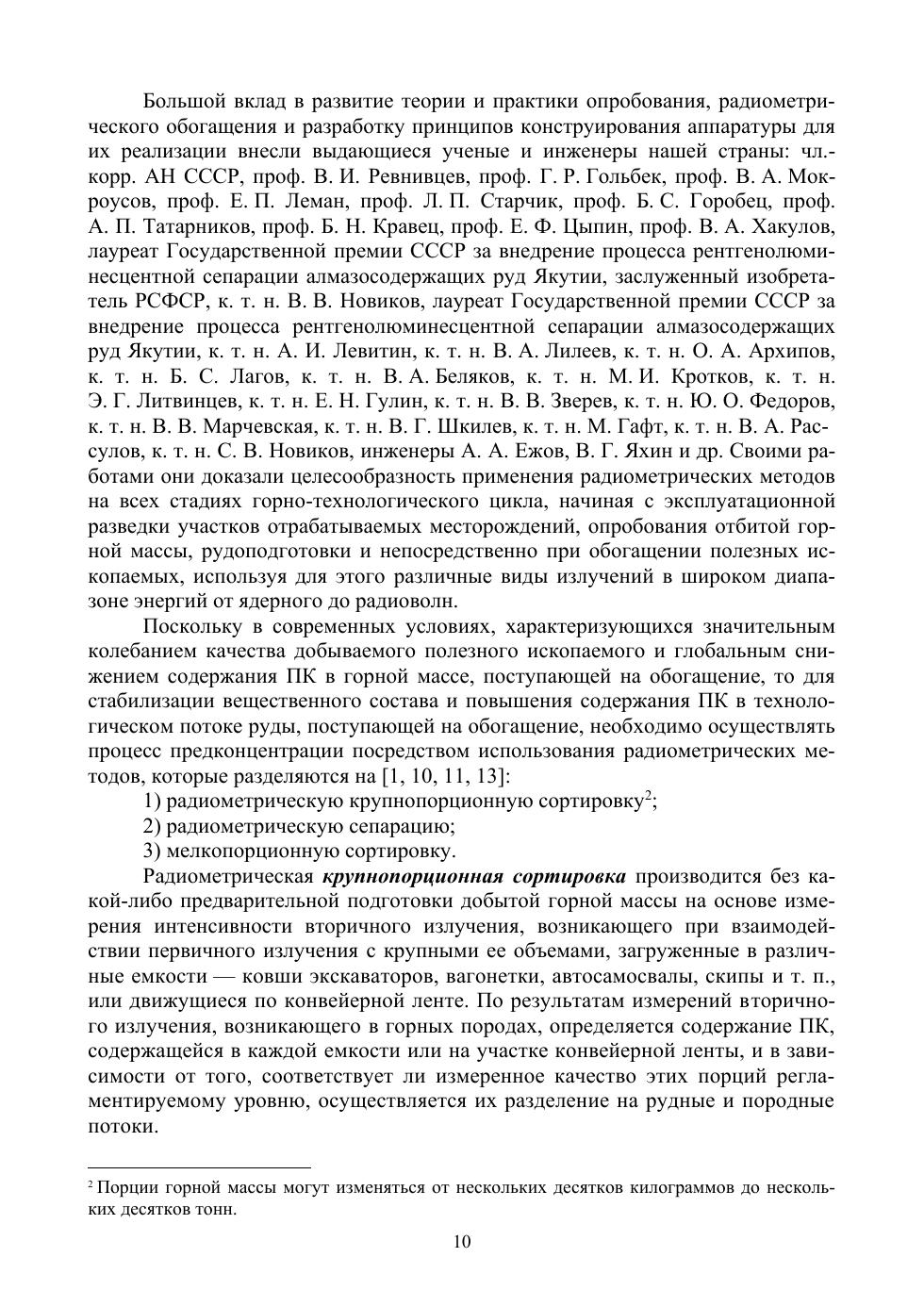 Учебник посвящен изложению основных положений теории радиометрических методов применительно ко всем стадиям горнотехнологического цикла, а также отражает практические достижения современных методов радиометрической предконцентрации минерального сырья. Приведена классификация радиометрических методов, основным критерием которой являются процессы взаимодействия различных видов излучений с минералами горных пород. Рассмотрены основные технологические задачи, решаемые с помощью радиометрических методов. Показано влияние радиометрических методов, используемых при опробовании, сортировке и сепарации добытой горной массы, на повышение эффективности процессов получения продукции горно-перерабатывающих предприятий. Учебник рекомендуется студентам специальностей «Горное дело» и «Физические процессы горного или нефтегазового производства», а также может быть полезным аспирантам и инженерам, интересующихся проблемами обогащения полезных ископаемых и управления качеством руд при добыче.
