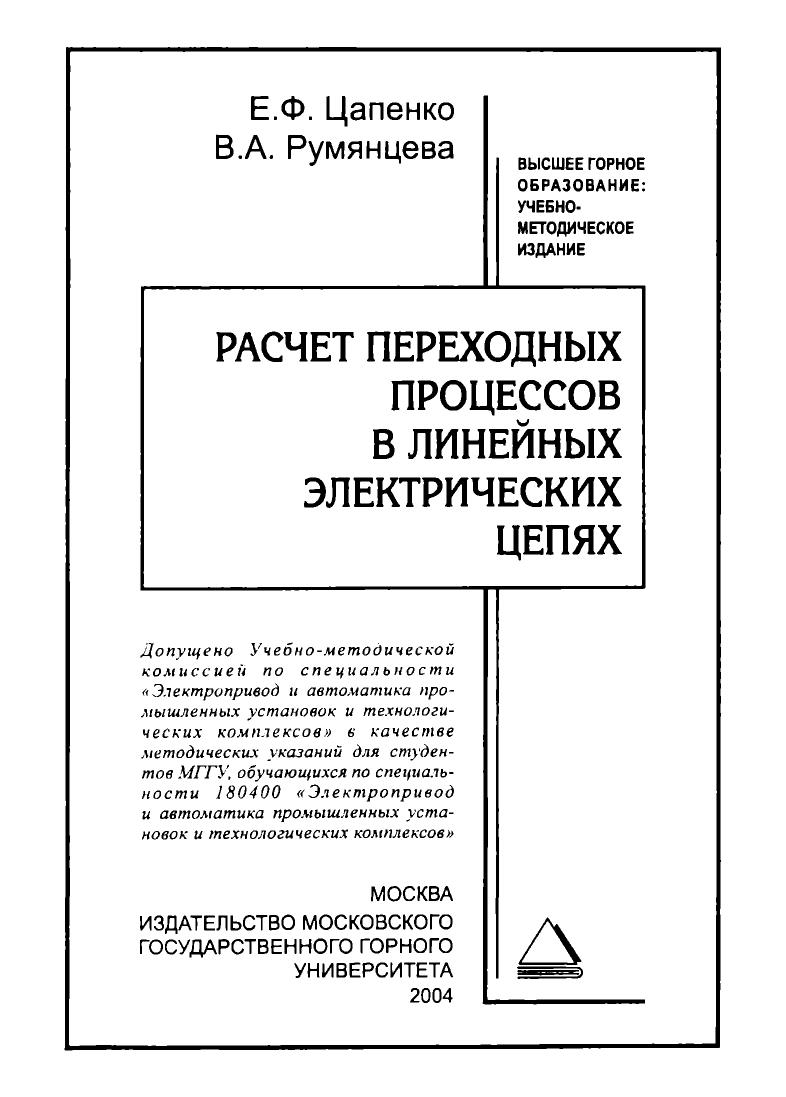 Приведены общие сведения по расчету переходных процессов в линейных электрических цепях из курса «Теоретические основы электротехники». Даны методические указания для выполнения расчетно-графического задания по разделу «Переходные процессы в линейных электрических цепях», варианты заданий. Рассмотрены примеры расчета электрической цепи второго порядка с источником постоянного напряжения в переходном режиме классическим методом и цепи третьего по-рядка символическим методом. Приведен пример использования пакета программ MathCad 2000 для нахождения оригиналов тока и напряжения. Для студентов МГГУ, обучающихся по специальности 180400 «Электропривод и автоматика промышленных установок и технологических комплексов».