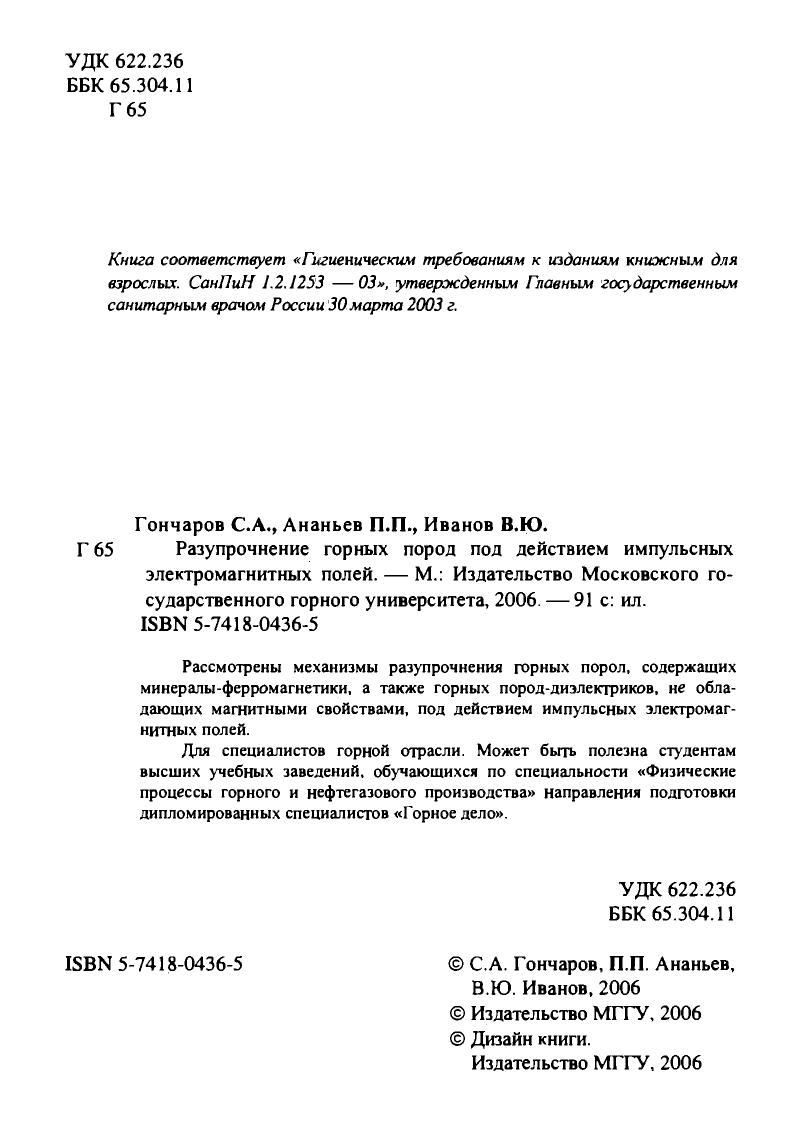 Рассмотрены механизмы разупрочнения горных пород, содержащих минералы-ферромагнетики, а также горных пород-диэлектриков, не обладающих магнитными свойствами, под действием импульсных электромагнитных полей. Для специалистов горной отрасли. Может быть полезна студентам высших учебных заведений, обучающихся по специальности «Физические процессы горного и нефтегазового производства» направления подготовки дипломированных специалистов «Горное дело».