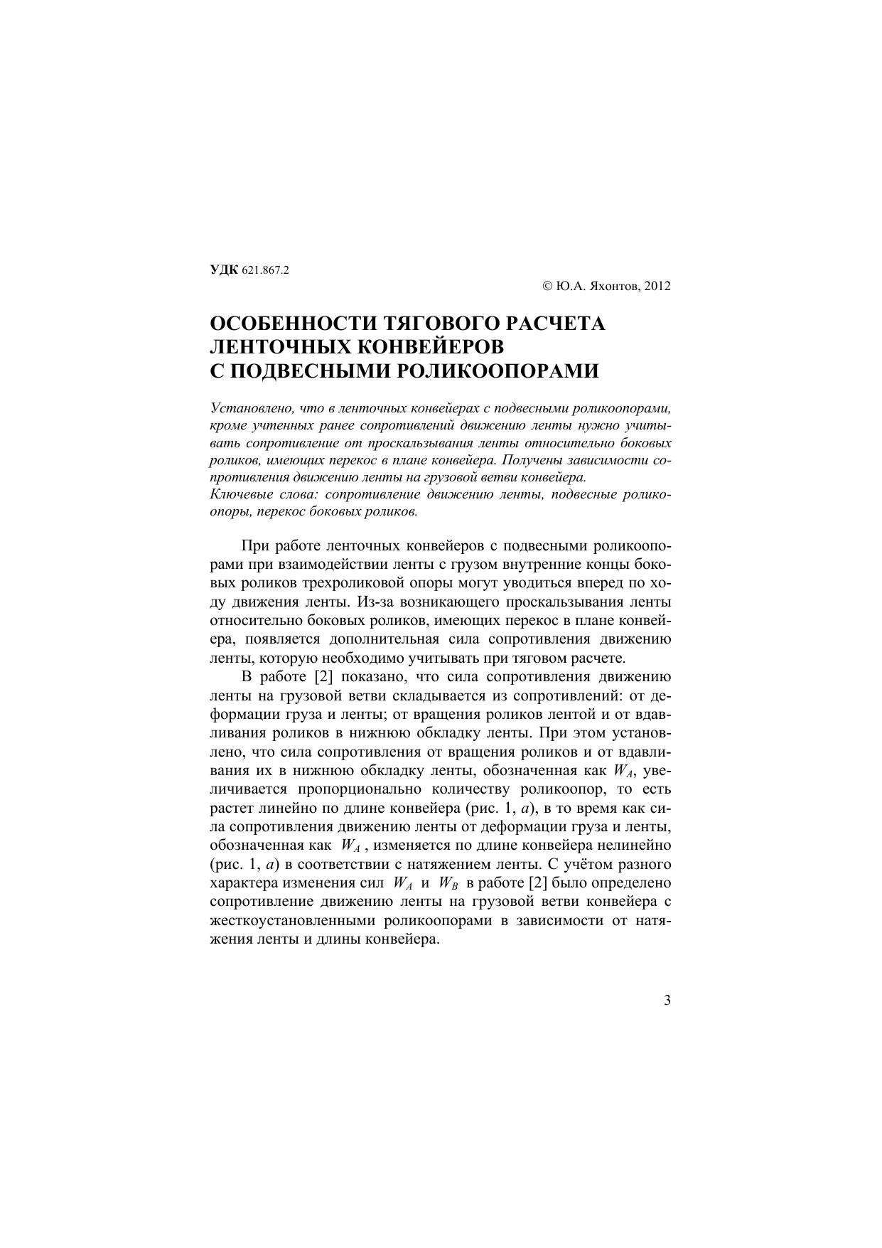 Развитие теории ленточных конвейеров с подвесными роликоопорами для горных предприятий