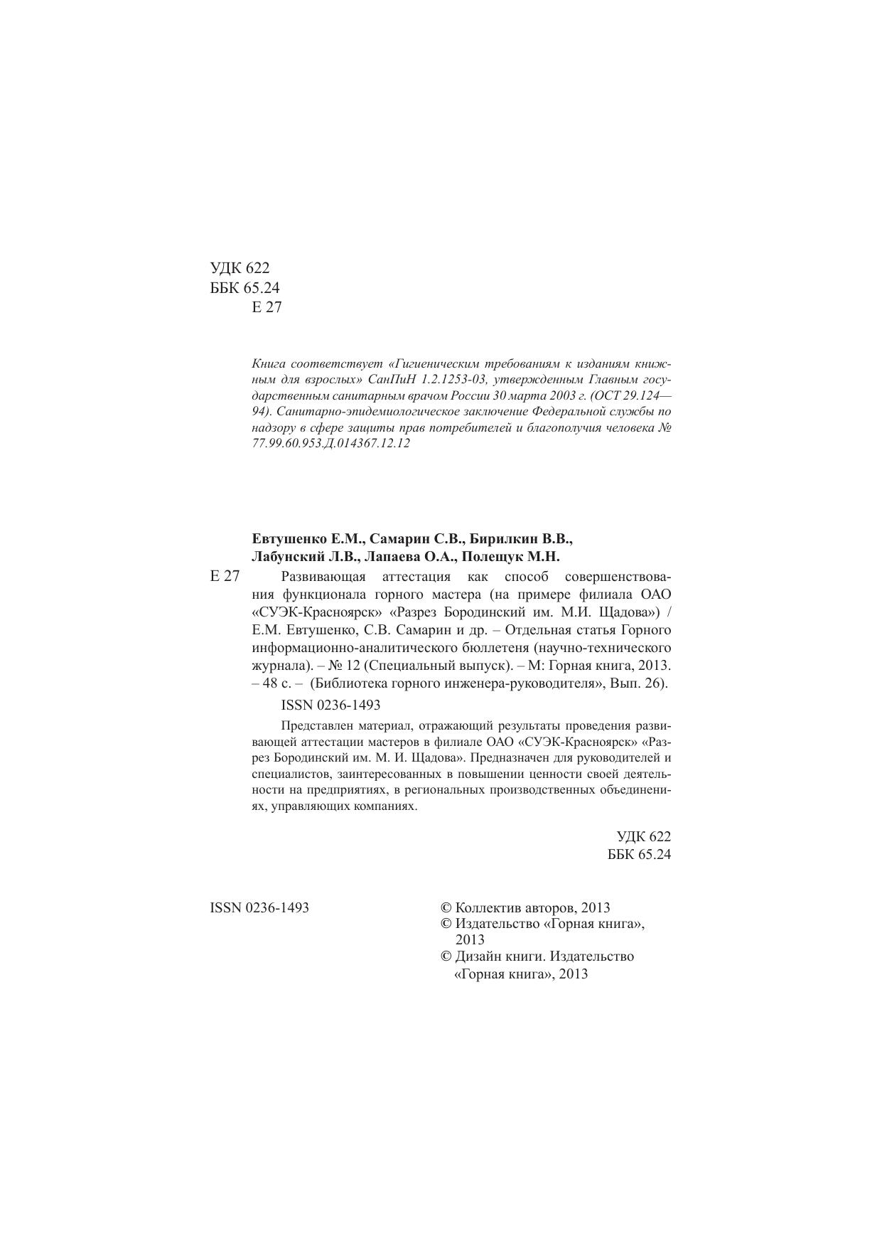 Развивающая аттестация как способ совершенствования функционала горного мастера (на примере филиала ОАО «СУЭК-Красноярск» «Разрез Бородинский им. М. И. Щадова»)