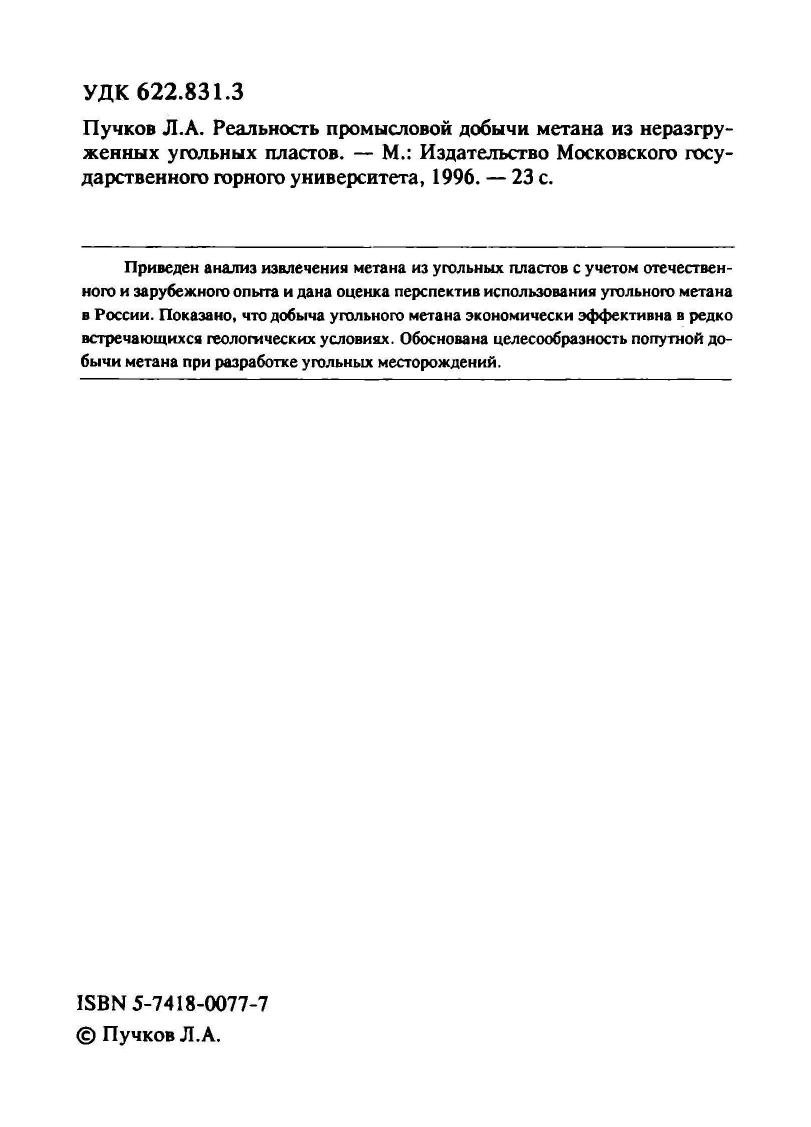 Реальность промысловой добычи метана из неразгруженных угольных пластов
