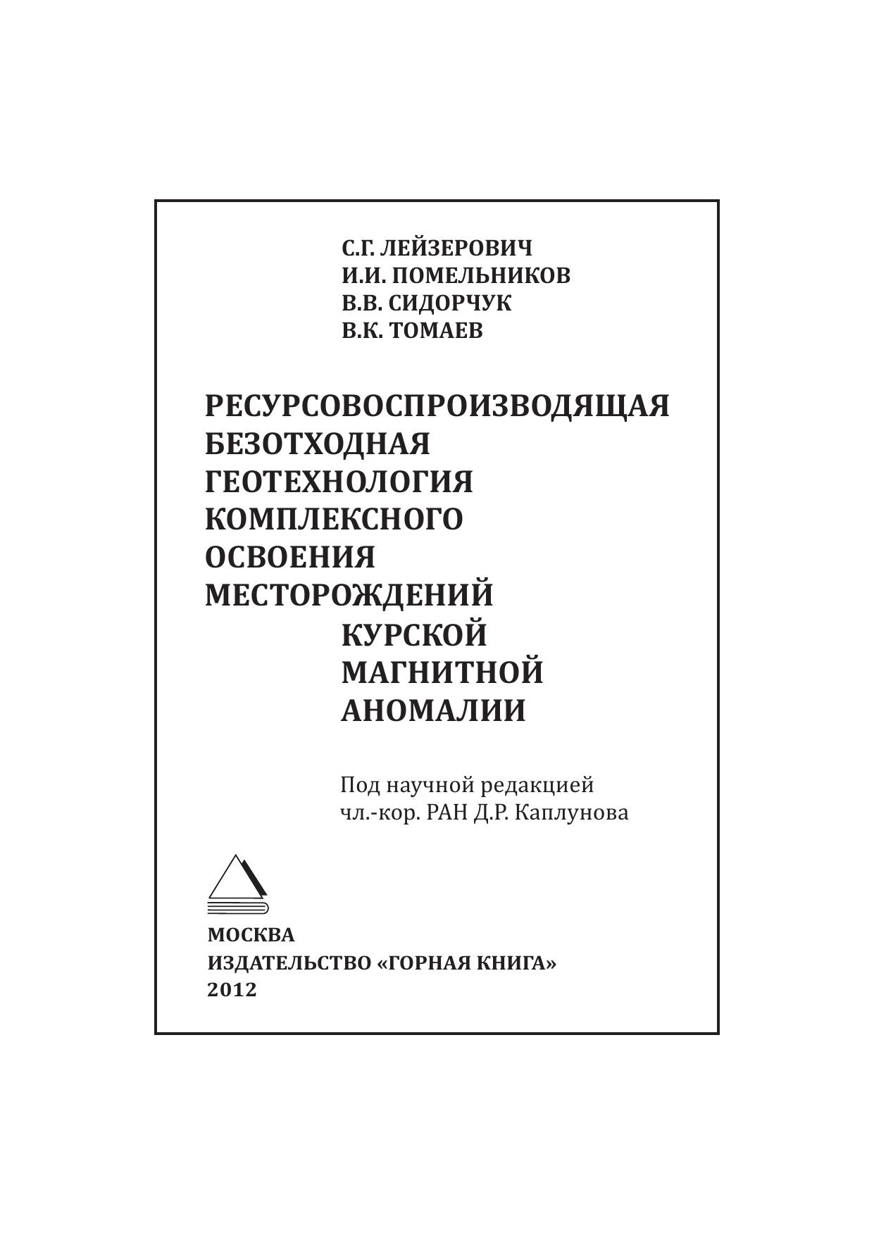 Ресурсовоспроизводящая безотходная геотехнология комплексного освоения месторождений Курской магнитной аномалии