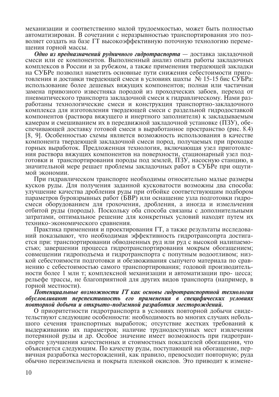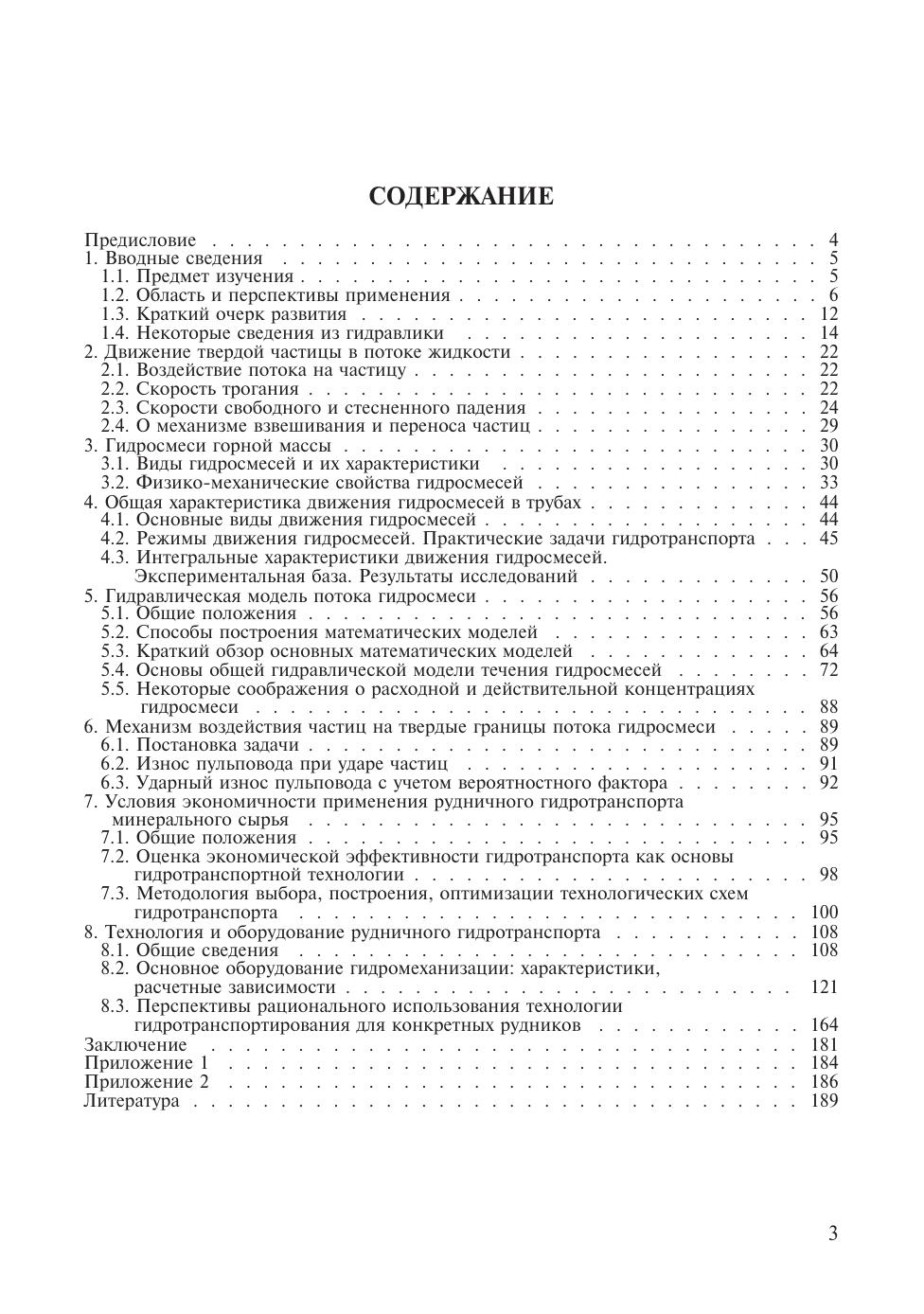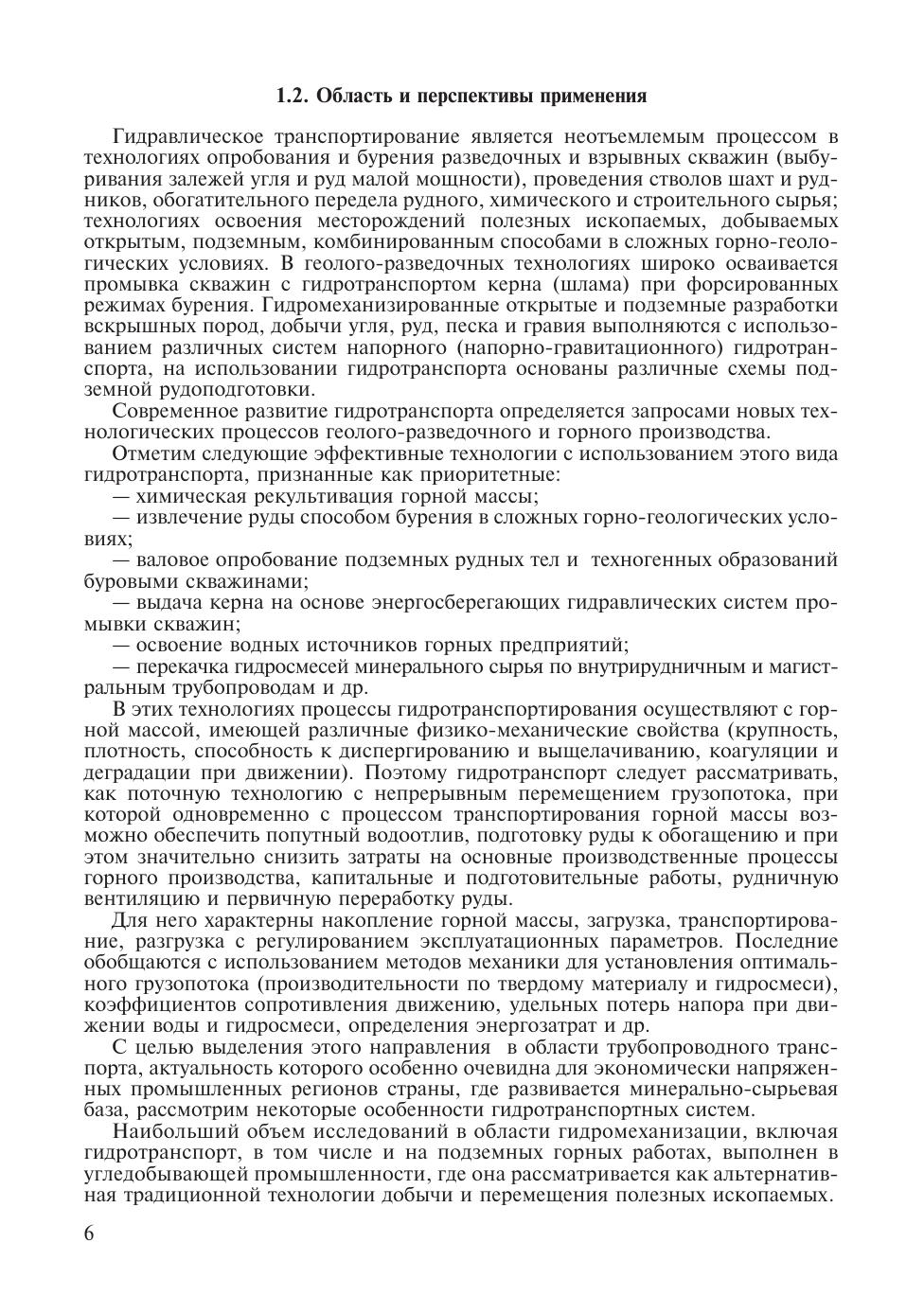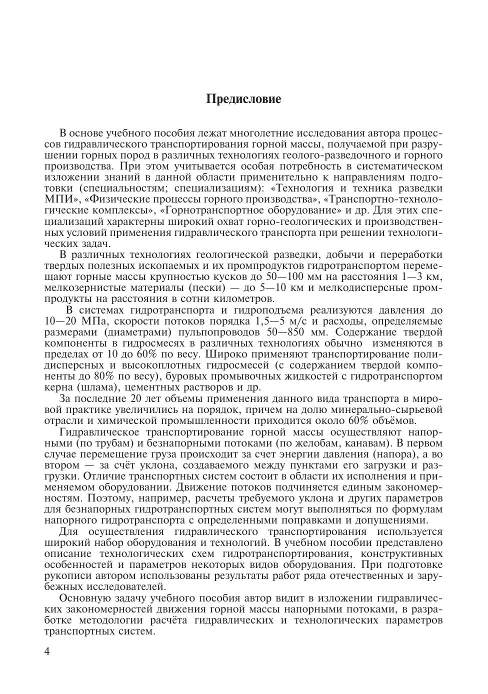 В учебном пособии излагаются основные сведения о технологии напорного гидравлического транспортирования руды, породы, получившей применение или рекомендуемой при подземной разработке твердых полезных ископаемых. Указана область применения и дан краткий очерк развития этого перспективного вида транспорта и подъема горной массы на ряде горнодобывающих предприятий черной и цветной металлургии. Кратко изложены основные сведения технической гидравлики, имеющие как методическое, так и практическое значение при решении некоторых задач гидротранспортной технологии. Описаны физико-механические свойства гидросмесей, режимы и интегральные характеристики напорного движения в трубах. Большое внимание уделено математическому моделированию потоков двухфазных гидросмесей; даны основы методологии создания моделей транспортирования твердой фазы гидросмеси на основе общих уравнений механики одномерного течения гетерогенных сред. Предложены инженерные методы расчета основных параметров гидротранспортирования. В книге отражены вопросы причин износа трубопроводов при гидротранспорте твердых материалов и более детально рассмотрен «ударный износ» (от косого удара частиц о стенку трубопровода), как наиболее часто происходящий на практике при гидротранспорте дробленых руд и пород.