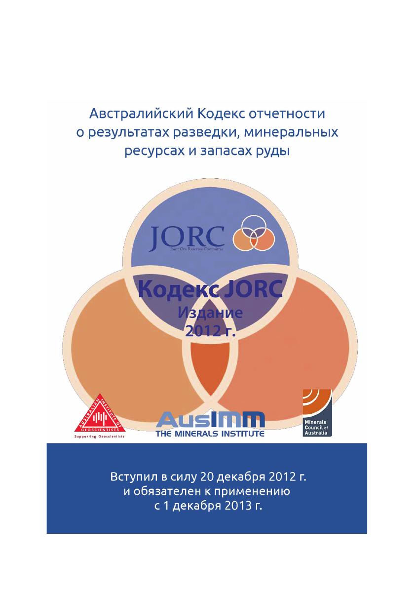 Сборник международных горных кодексов. JORC (издание 2012 г.), VALMIN (издание 2015 г.), австралийское руководство по оценке и классификации угольных ресурсов (издание 2014 г.)