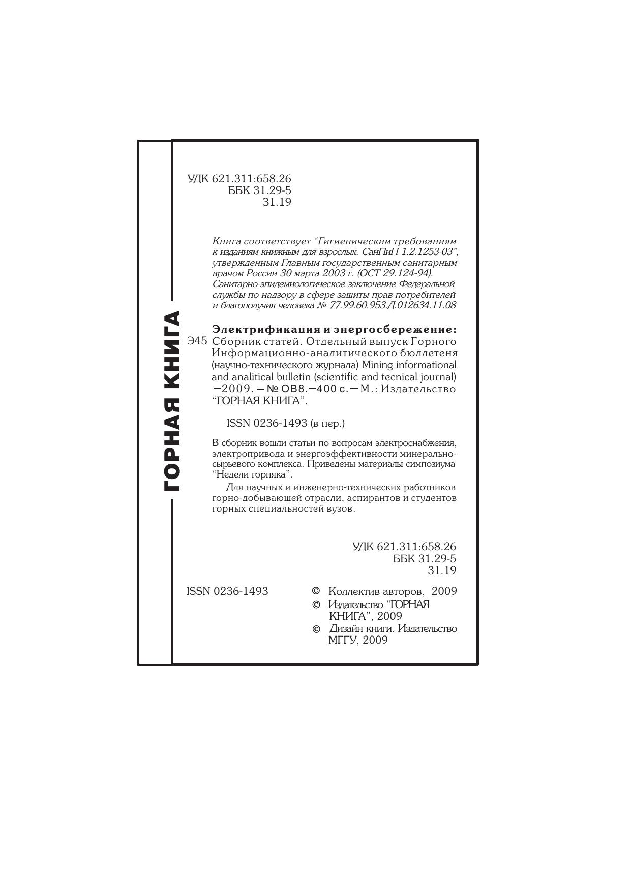 Сборник научных статей. Электрификация и энергосбережение. Отдельный выпуск Горного информационно-аналитического бюллетеня (научно-технического журнала)