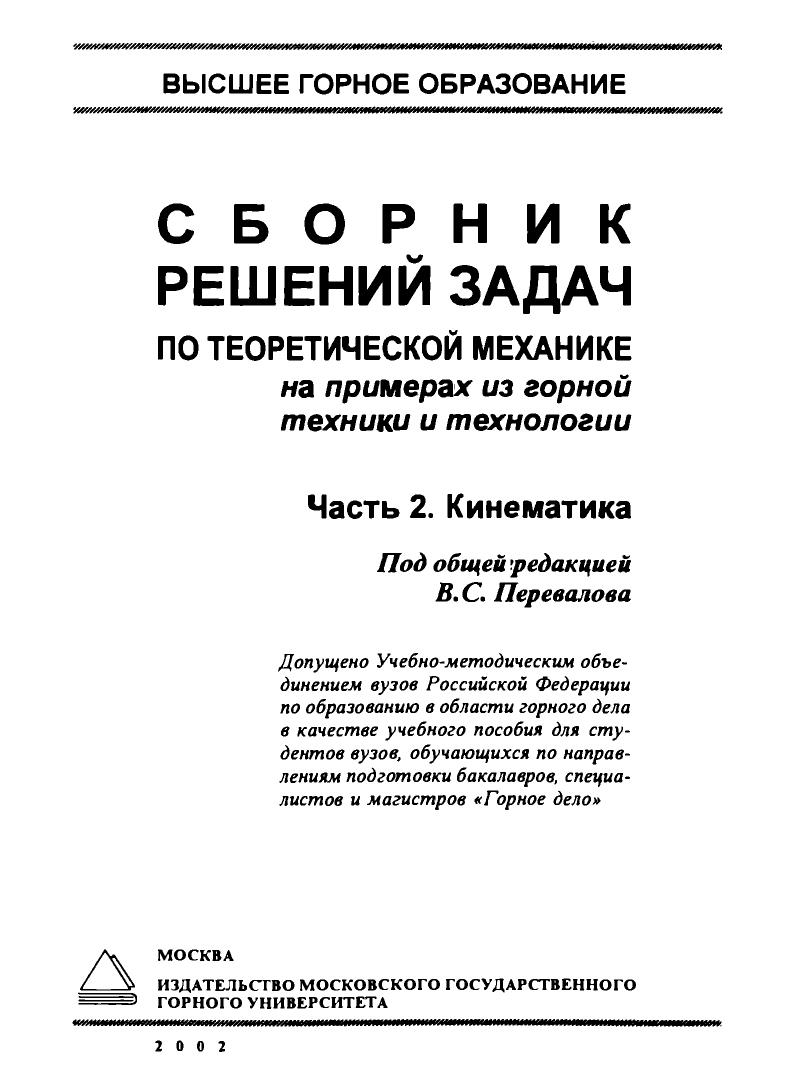 Сборник решений задач по теоретической механике на примерах из горной техники и технологии. Ч.2. Кинематика