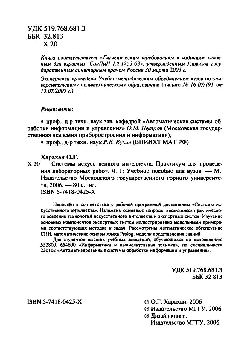 Написано в соответствии с рабочей программой дисциплины «Системы искусственного интеллекта». Изложены основные вопросы, касающиеся практического освоения технологий искусственного интеллекта и экспертных систем. Изучение основных компонентов экспертных систем иллюстрировано модельными примерами соответствующих методов и задач. Рассмотрены математическое обеспечение СИИ, математические основы языка Рго1оg, модели представления знаний. Для студентов высших учебных заведений, обучающихся по направлению 552800, 654600 «Информатика и вычислительная техника», по специальности 230102 «Автоматизированные системы обработки информации и управления».