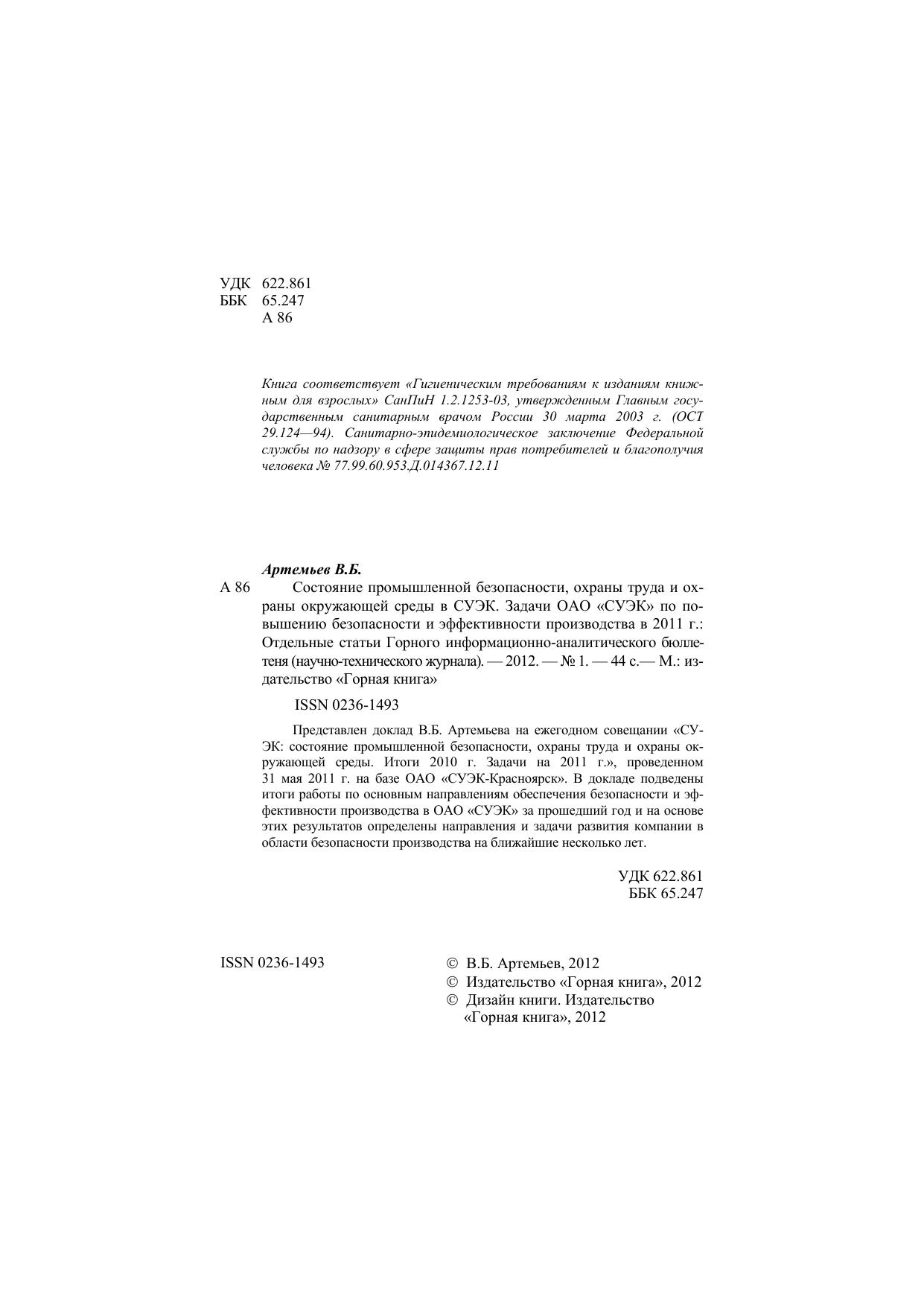 Представлен доклад В.Б. Артемьева на ежегодном совещании «СУЭК: состояние промышленной безопасности, охраны труда и охраны окружающей среды. Итоги 2010 г. Задачи на 2011 г.», проведенном 31 мая 2011 г. на базе ОАО «СУЭК-Красноярск». В докладе подведены итоги работы по основным направлениям обеспечения безопасности и эффективности производства в ОАО «СУЭК» за прошедший год и на основе этих результатов определены направления и задачи развития компании вобласти безопасности производства на ближайшие несколько лет.
