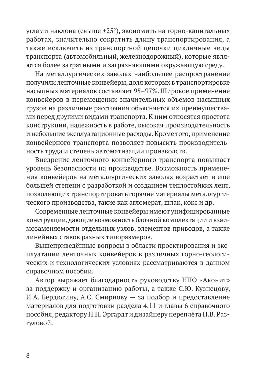 Представлен краткий исторический обзор основных этапов создания, развития и применения ленточных конвейеров. Приведён сравнительный анализ конструктивных и эксплуатационных особенностей основных узлов ленточных конвейеров различного назначения с учётом области их применения. Представлены параметры и технические характеристики оборудования. Сформулированы основные требования, предъявляемые к современным ленточным конвейерам, и дана классификация их технико-технологической эффективности и экологической безопасности. Разработан классификатор ленточных конвейеров на основе их существующей и перспективной технической оснащённости. Обозначены перспективные направления развития ленточного конвейеростроения в России. Для инженерно-технических и научных работников, занимающихся конструированием, проектированием и эксплуатацией специальных ленточных конвейеров, а также преподавателей, аспирантов, магистров, бакалавров и студентов старших курсов вузов соответствующего профиля.