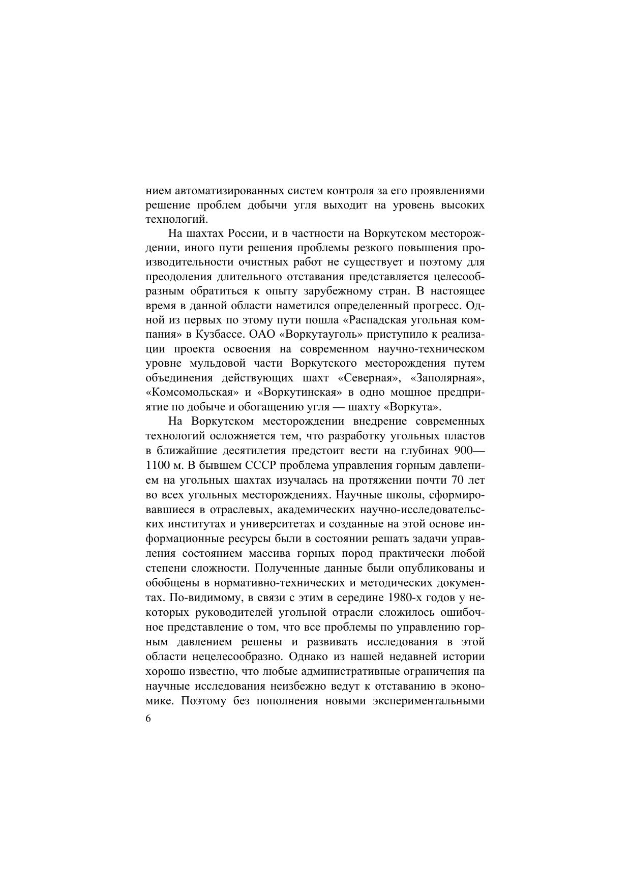 Одним из основных факторов, осложняющих разработку пластов Воркутского месторождения на глубине 900?1000 м, являются горные удары в кровле, которая сложена мощными слоями прочных пород, склонных к зависаниям на больших площадях. Превентивные меры, регламентированные инструкциями по борьбе с горными ударами, очаг которых формируется в угольном пласте, в данных условиях не гарантируют безопасность горных работ, а методы прогноза не обладают достаточной надежностью. Решение совокупности указанных проблем возможно при условии использования современных достижений и информационных ресурсов в области геотехнологии: многоштрековая подготовка, тросовая анкерная крепь, автоматизированные системы контроля проявлений горного давления в масштабе реального времени, цифровые модели шахт и экспертные системы. Проектирование подготовки выемочных участков при охране выработок околоштрековыми целиками должно производиться исходя из условий предотвращения горных ударов в кровле, динамических разломов почвы и снижения потерь угля. Для инженерно-технического персонала ОАО «Воркутауголь» и других угольных компаний и шахт c аналогичными горно-геологическими условиями при разработке пространственно-планировочных решений по вскрытию, подготовке и отработке угольных месторождений. Кафедра «Подземной разработки пластовых месторождений» Московского государственного горного университета рекомендует разработанные технологические и технические решения для внедрения