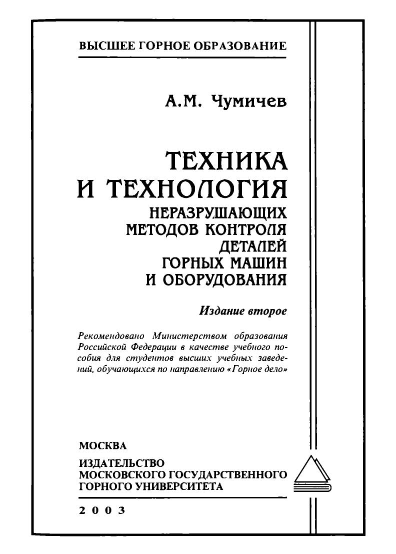 Техника и технология неразрушающих методов контроля деталей горных машин и оборудования