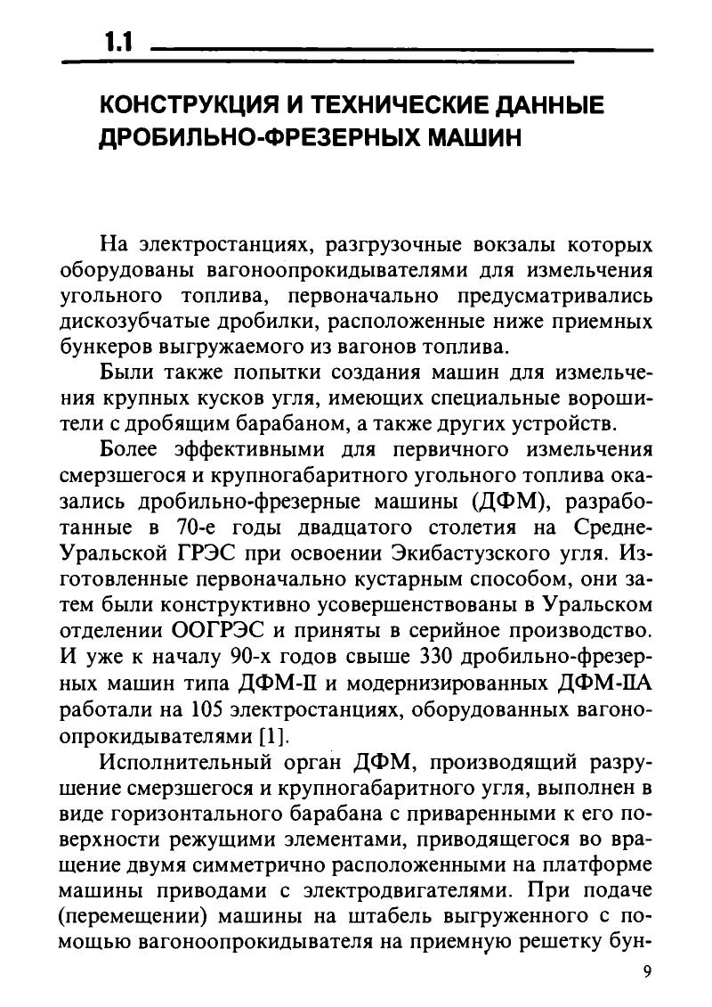 Технологические процессы и машины для измельчения смерзшегося и крупногабаритного угольного топлива