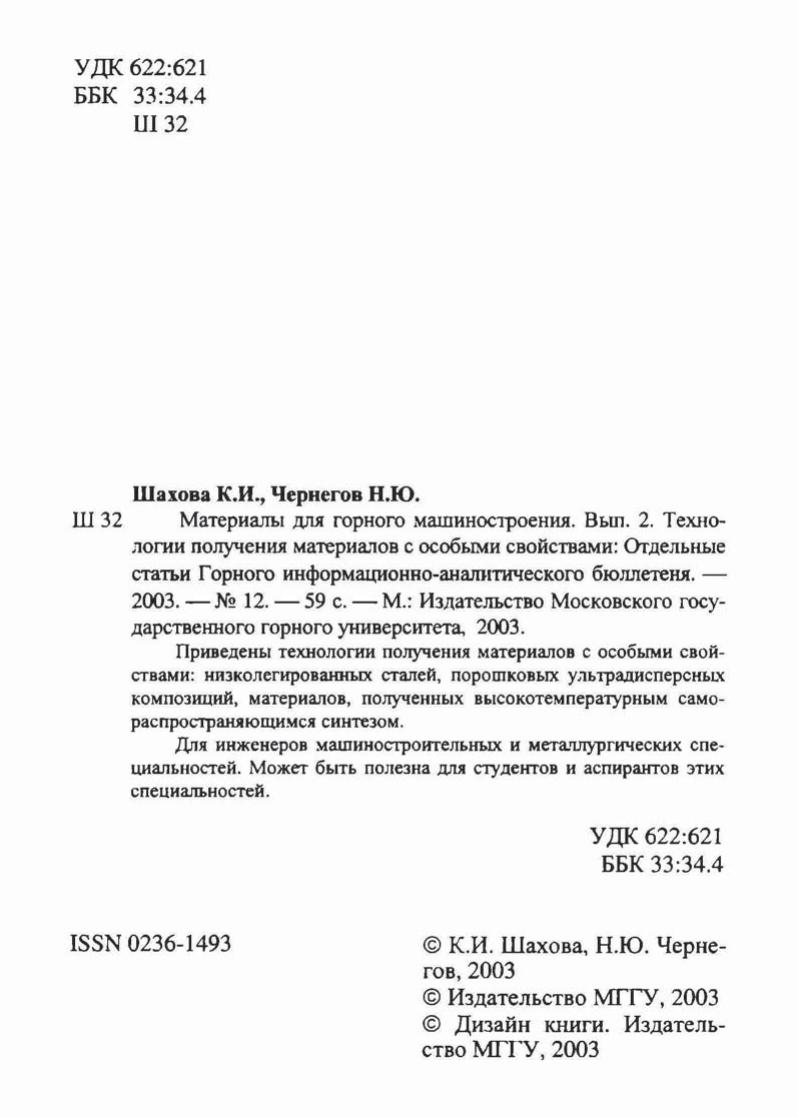 Технологии получения материалов с особыми свойствами (Материалы для горного машиностроения. Вып. 2)