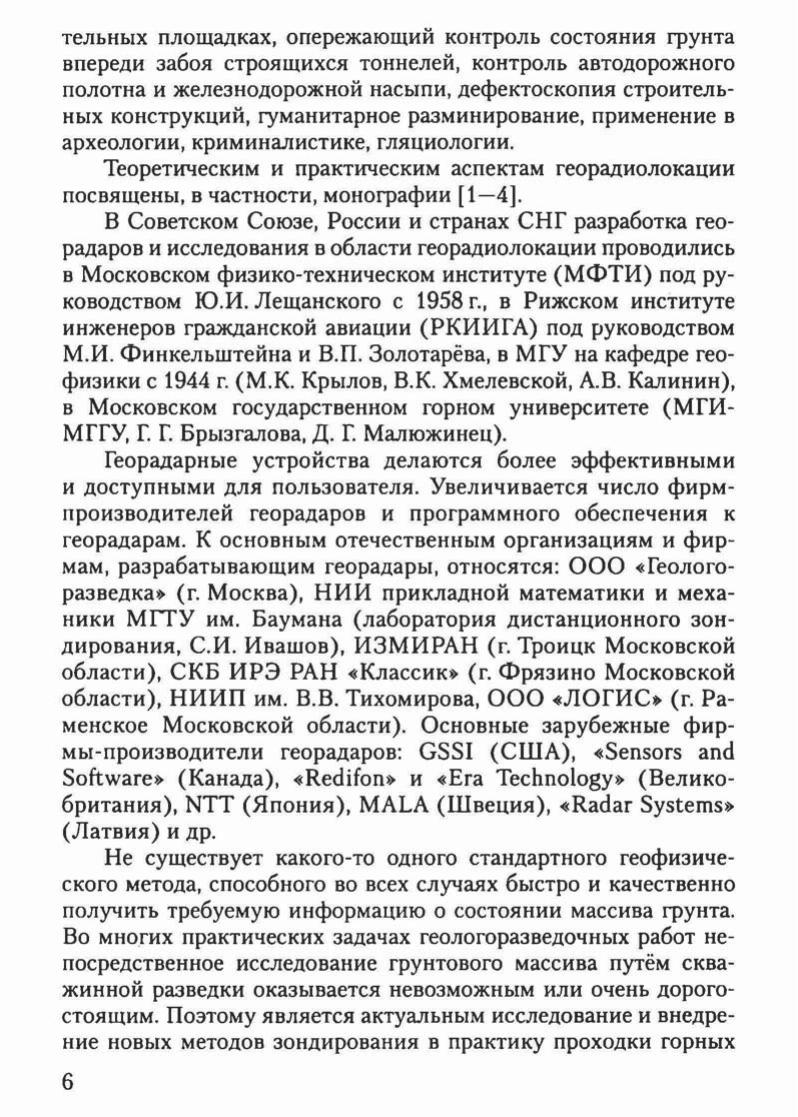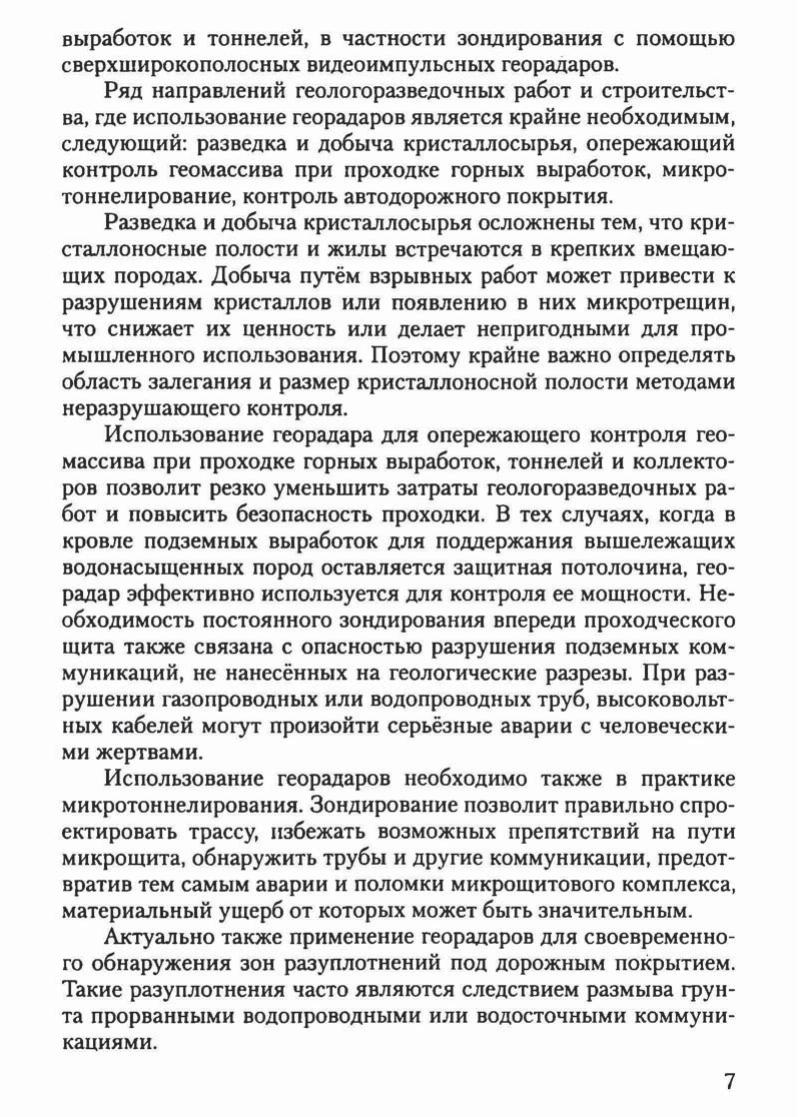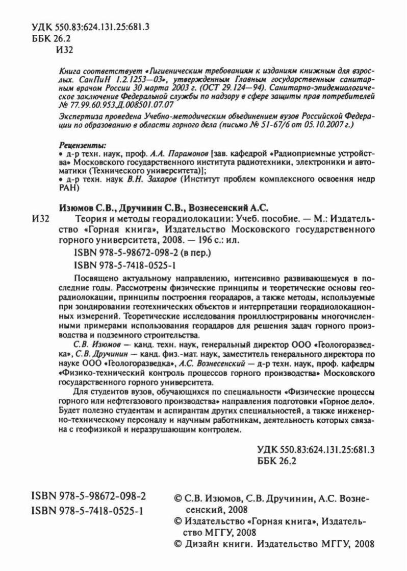 Посвящено актуальному направлению, интенсивно развивающемуся в последние годы. Рассмотрены физические принципы и теоретические основы георадиолокации, принципы построения георадаров, а также методы, используемые при зондировании геотехнических объектов и интерпретации георадиолокационных измерений. Теоретические исследования проиллюстрированы многочисленными примерами использования георадаров для решения задач горного производства и подземного строительства. Для студентов вузов, обучающихся по специальности «Физические процессы горного или нефтегазового производства» направления подготовки «Горное дело». Будет полезно студентам и аспирантам других специальностей, а также инженерно-техническому персоналу и научным работникам, деятельность которых связана с геофизикой и неразрушающим контролем.
