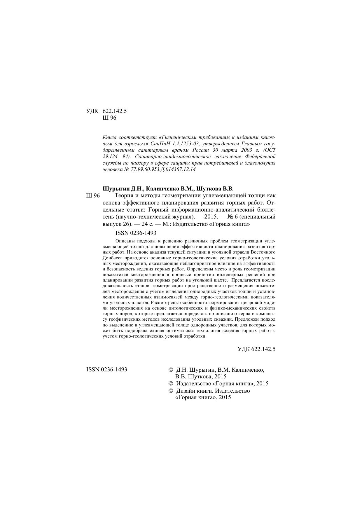 Теория и методы геометризации углевмещающей толщи как основа эффективного планирования развития горных работ. Отдельные статьи: Горный информационно-аналитический бюллетень (научно-технический журнал)