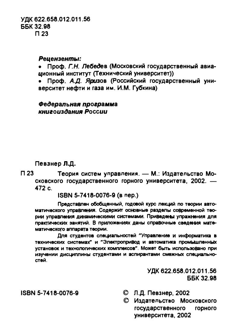 Гриф: Допущено Учебно-методическим объединением вузов Российской Федерации по горному образованию в качестве учебного пособия для студентов вузов, обучающихся по специальности «Управление и информатика в технических системах.
