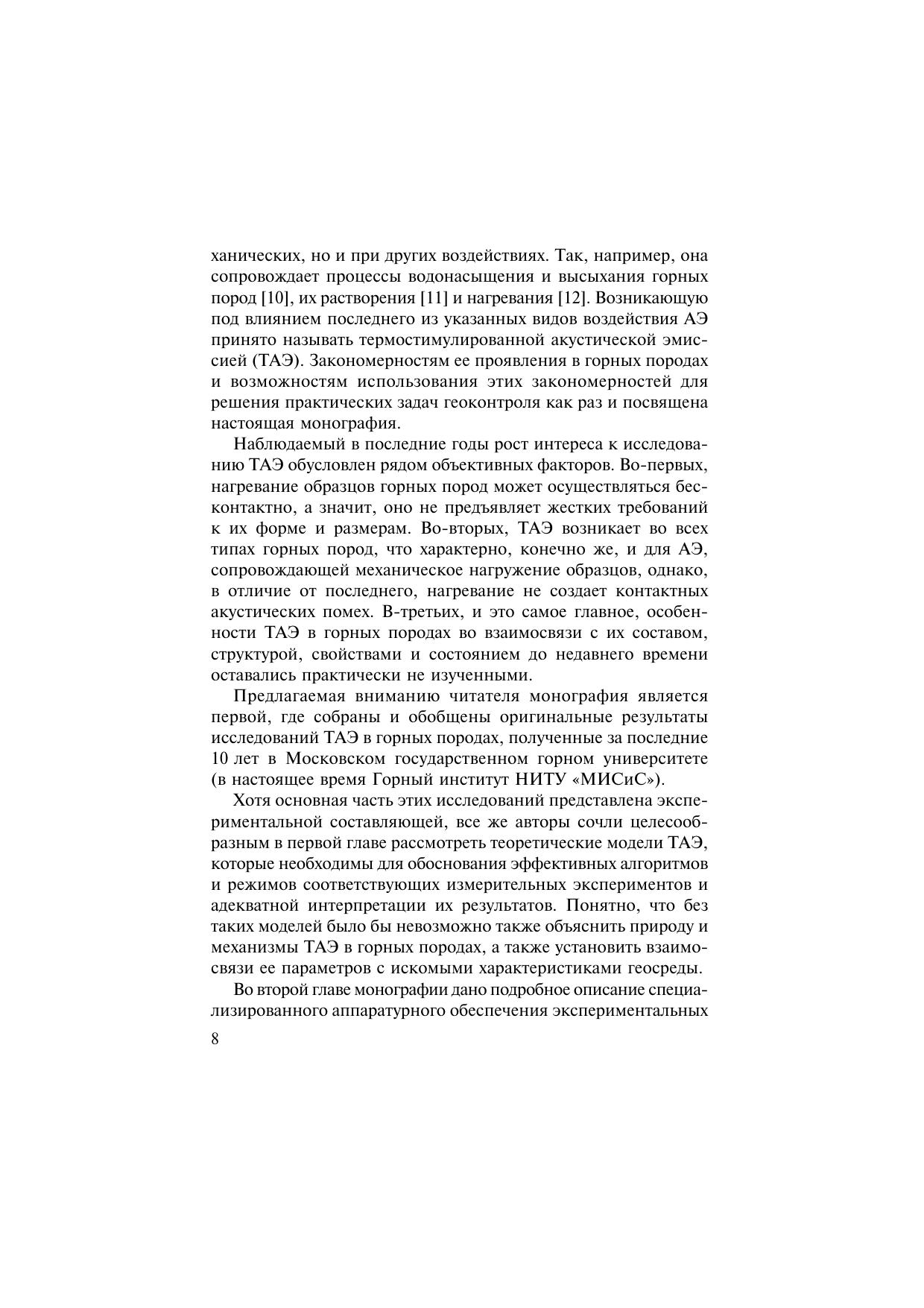Представлены результаты теоретических и экспериментальных исследований термостимулированной акустической эмиссии (ТАЭ) в геоматериалах. Рассмотрены теоретические модели, объясняющие некоторые механизмы формирования ТАЭ, обусловленные действующими в геосреде термонапряжениями. Дано описание аппаратурного и методического обеспечения для измерения параметров ТАЭ в образцах геоматериалов при различных схемах и режимах термического воздействия на них. Приведены результаты экспериментального изучения закономерностей ТАЭ в геоматериалах во взаимосвязи с их свойствами, структурой, составом и напряженно-деформированным состоянием. Для научных и инженерно-технических работников, специализирующихся в области горной геофизики, геоакустики и геомеханики, определения параметров структуры, минерального состава, свойств и напряженного состояния горных пород, а также аспирантов и студентов, ведущих исследования в этих и смежных областях.