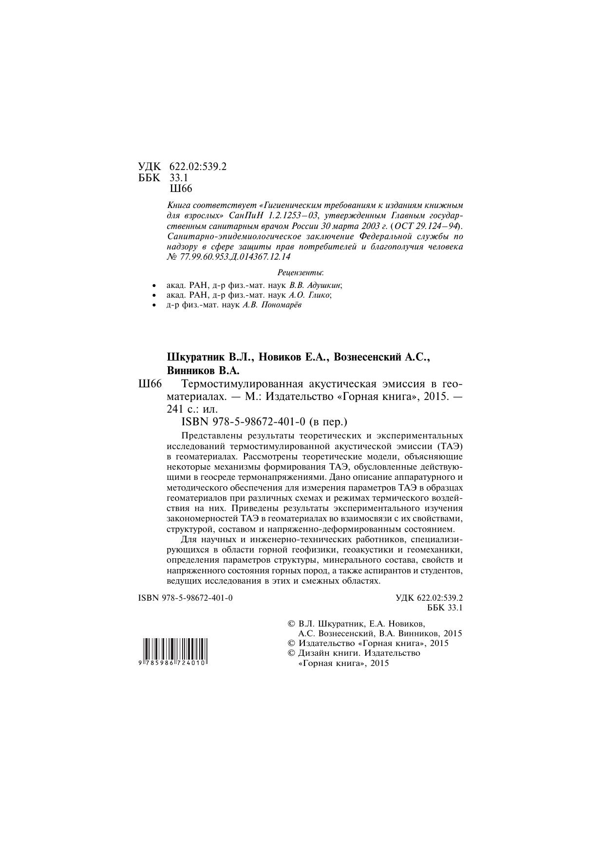 Для научных и инженерно-технических работников, специализирующихся в области горной геофизики, геоакустики и геомеханики, определения параметров структуры, минерального состава, свойств и напряженного состояния горных пород, а также аспирантов и студентов, ведущих исследования в этих и смежных областях.