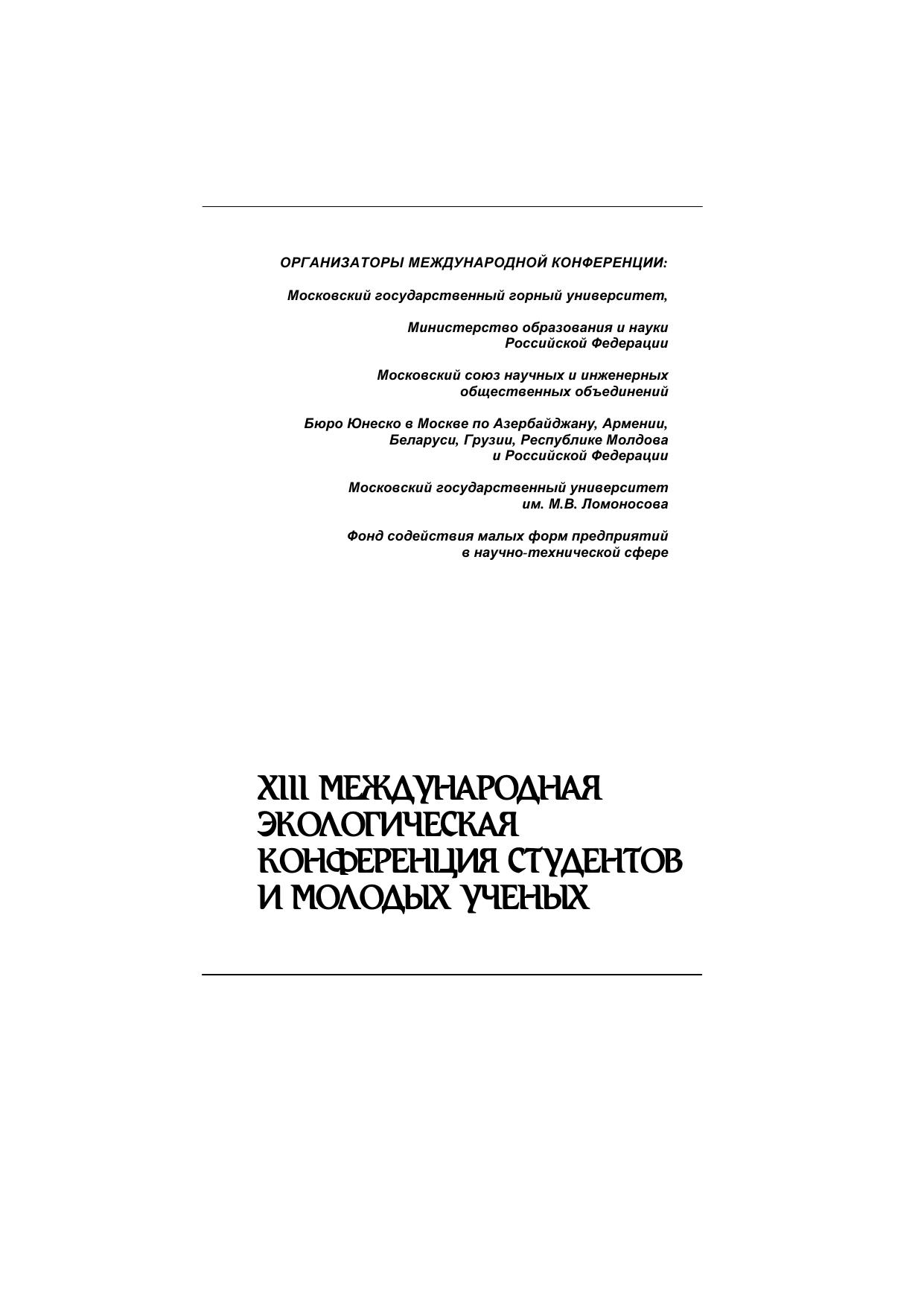 В сборнике представлены научные статьи студентов и молодых ученых Московского государственного горного университета, Сибирского федерального университета, Тихоокеанского государственного университета, Санкт-Петербургского государственного горного института (технического университета), Пензенского государственного университета, Читинского государственного университета, Курской государственной сельскохозяйственной академии им. И.И. Иванова, Вятской государственной сельскохозяйственной академии, Самарского государственного аэрокосмического университета им. С.П. Королева, Российского государственного университета нефти и газа им. И.М. Губкина и Магнитогорского государственного технического университета им. Г.И. Носова. Статьи написаны по докладам, сделанным на секциях 13-й Международной экологической конференции студентов и молодых ученых «Горное дело и окружающая среда. Инновации и высокие технологии XXI века» и факультетских научных конференциях в рамках «Недели студенческой науки 2009».