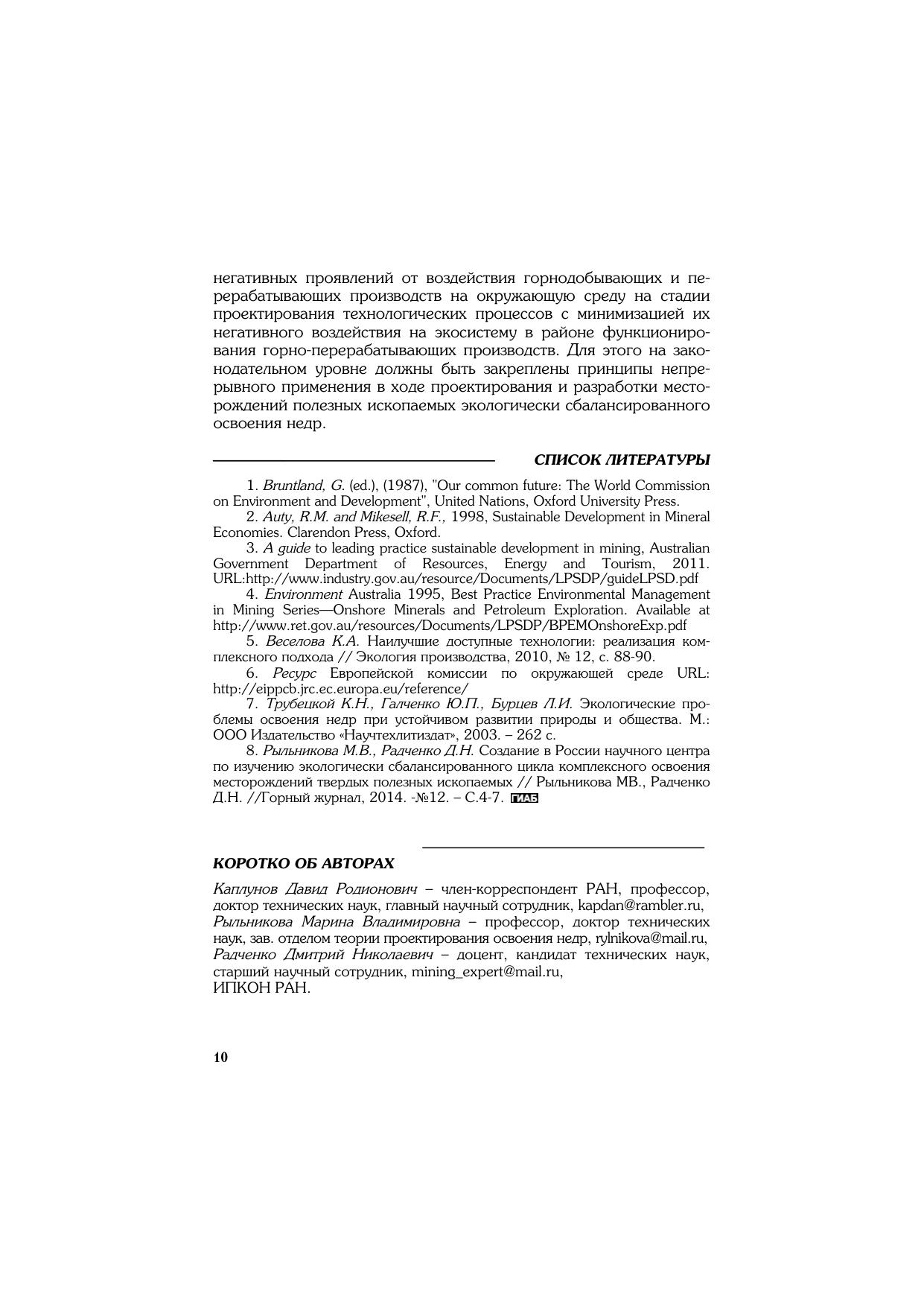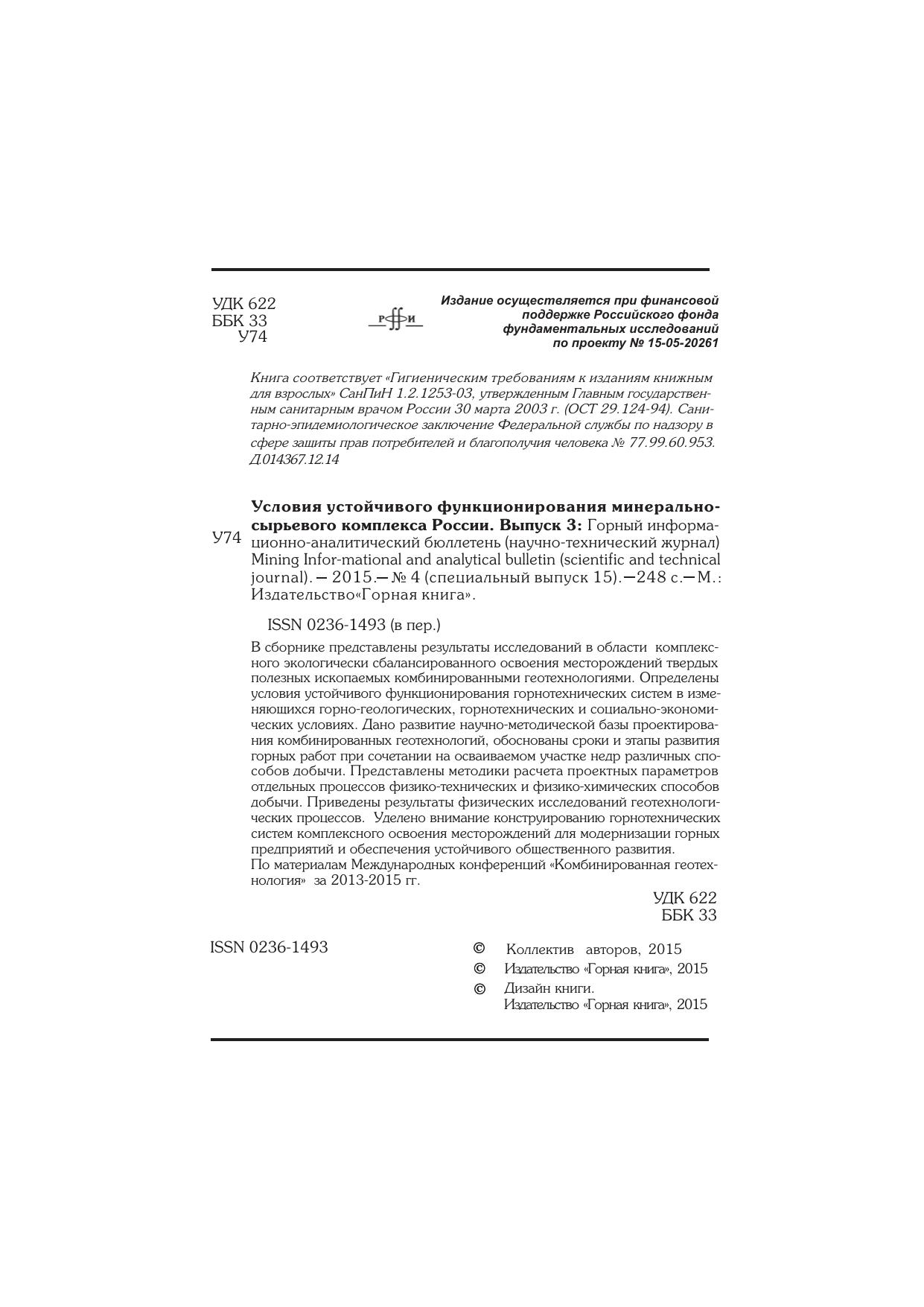 Условия устойчивого функционирования минерально-сырьевого комплекса России Выпуск 3: . Горный информационно-аналитический бюллетень (научно-технический журнал) Mining Informational and Analytical Bulletin (Scientific and Technical Journal)
