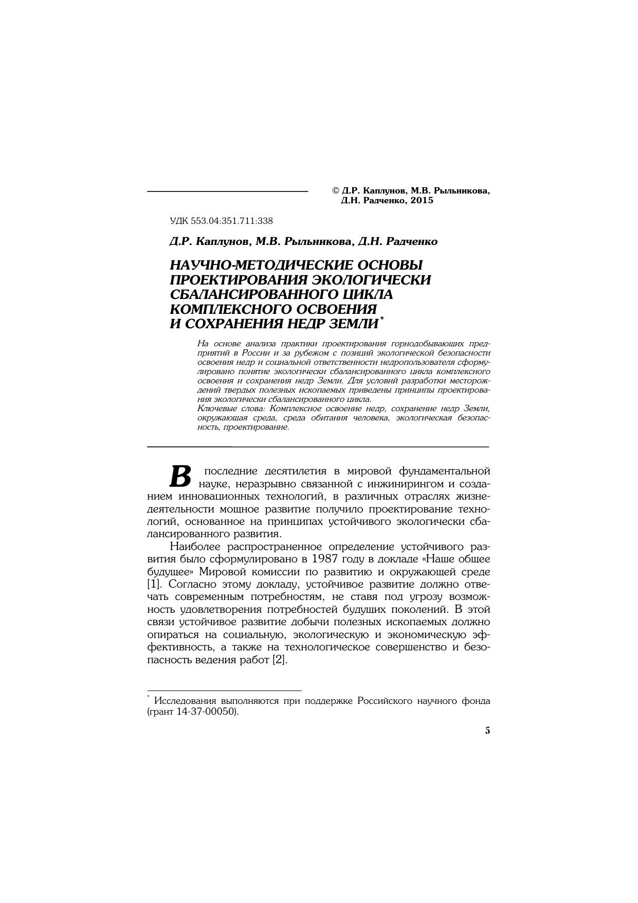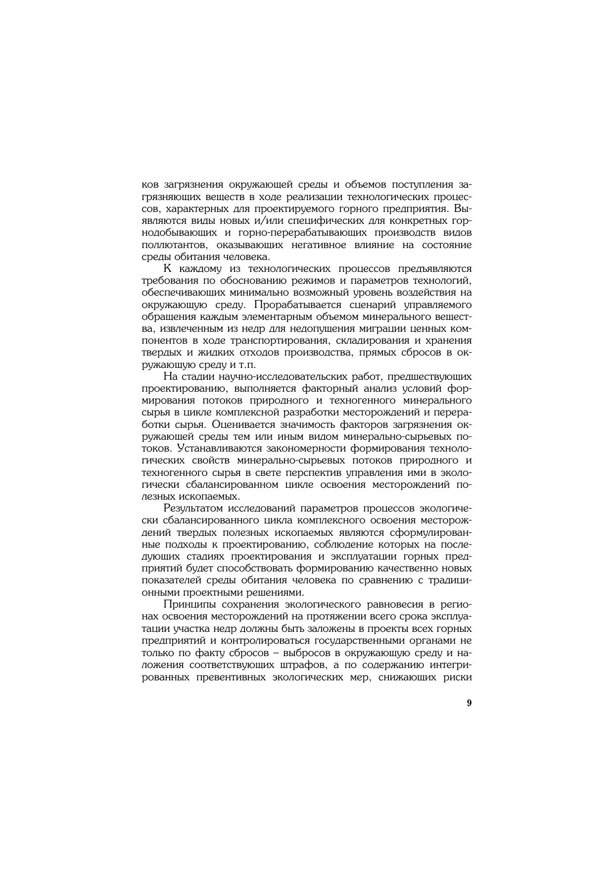 В сборнике представлены результаты исследований в области комплексного экологически сбалансированного освоения месторождений твердых полезных ископаемых комбинированными геотехнологиями. Определены условия устойчивого функционирования горнотехнических систем в изменяющихся горно-геологических, горнотехнических и социально-экономических условиях. Дано развитие научно-методической базы проектирования комбинированных геотехнологий, обоснованы сроки и этапы развития горных работ при сочетании на осваиваемом участке недр различных способов добычи. Представлены методики расчета проектных параметров отдельных процессов физико-технических и физико-химических способов