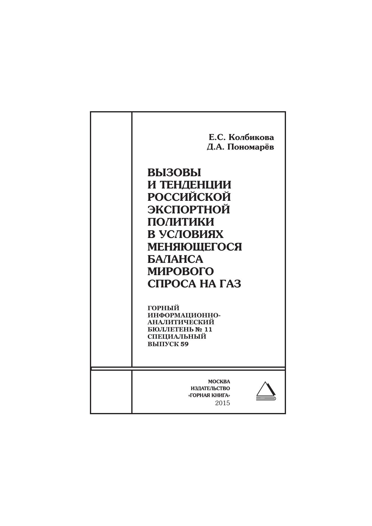 Вызовы и тенденции российской экспортной политики в условиях меняющегося баланса мирового спроса на газ. Отдельные статьи: Горный информационно-аналитический бюллетень (научно-технический журнал)