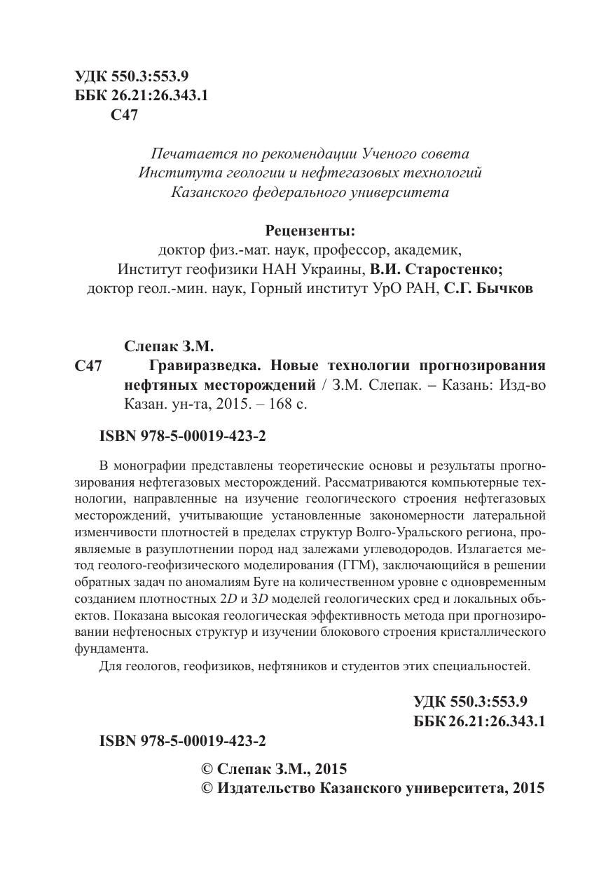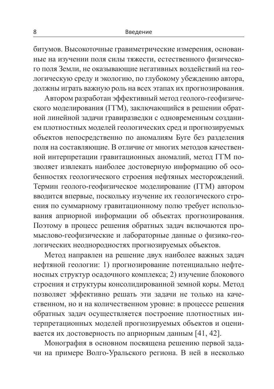 В монографии представлены теоретические основы и результаты прогнозирования нефтегазовых месторождений. Рассматриваются компьютерные технологии, направленные на изучение геологического строения нефтегазовых месторождений, учитывающие установленные закономерности латеральной изменчивости плотностей в пределах структур Волго-Уральского региона, проявляемые в разуплотнении пород над залежами углеводородов. Излагается метод геолого-геофизического моделирования (ГГМ), заключающийся в решении обратных задач по аномалиям Буге на количественном уровне с одновременным созданием плотностных 2D и 3D моделей геологических сред и локальных объектов. Показана высокая геологическая эффективность метода при прогнозировании нефтеносных структур и изучении блокового строения кристаллического фундамента.