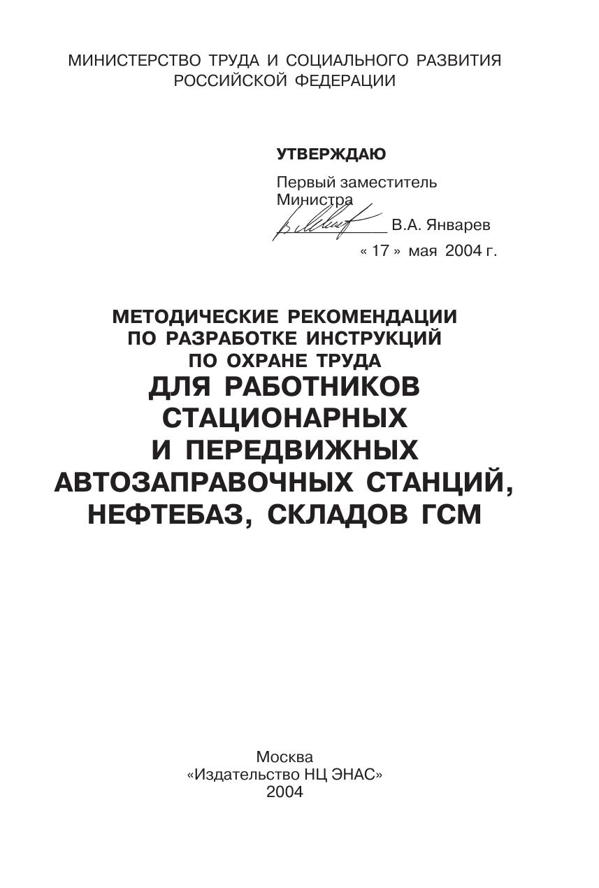 Методические рекомендации по разработке инструкций по охране труда для работников стационарных и передвижных автозаправочных станций, нефтебаз, складов ГСМ