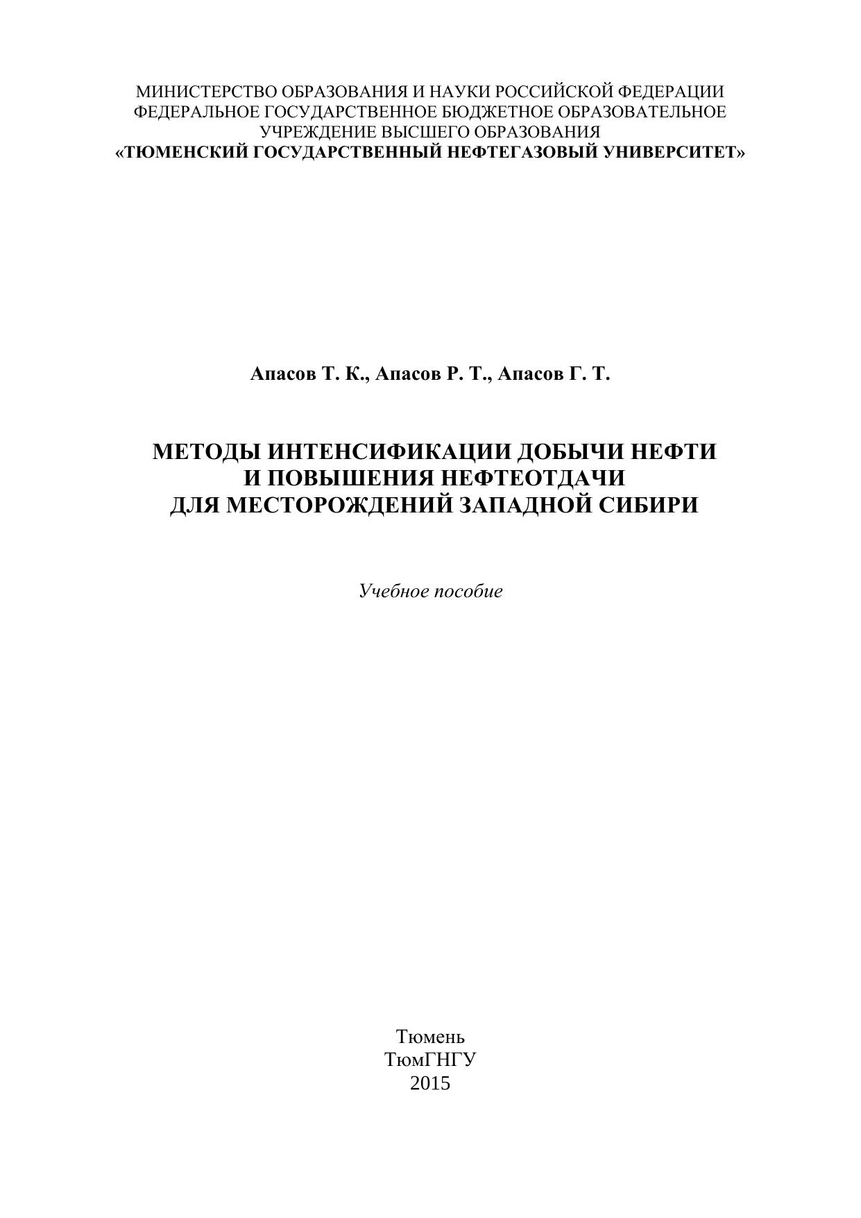 Методы интенсификации добычи нефти и повышения нефтеотдачи для месторождений Западной Сибири: учебное пособие