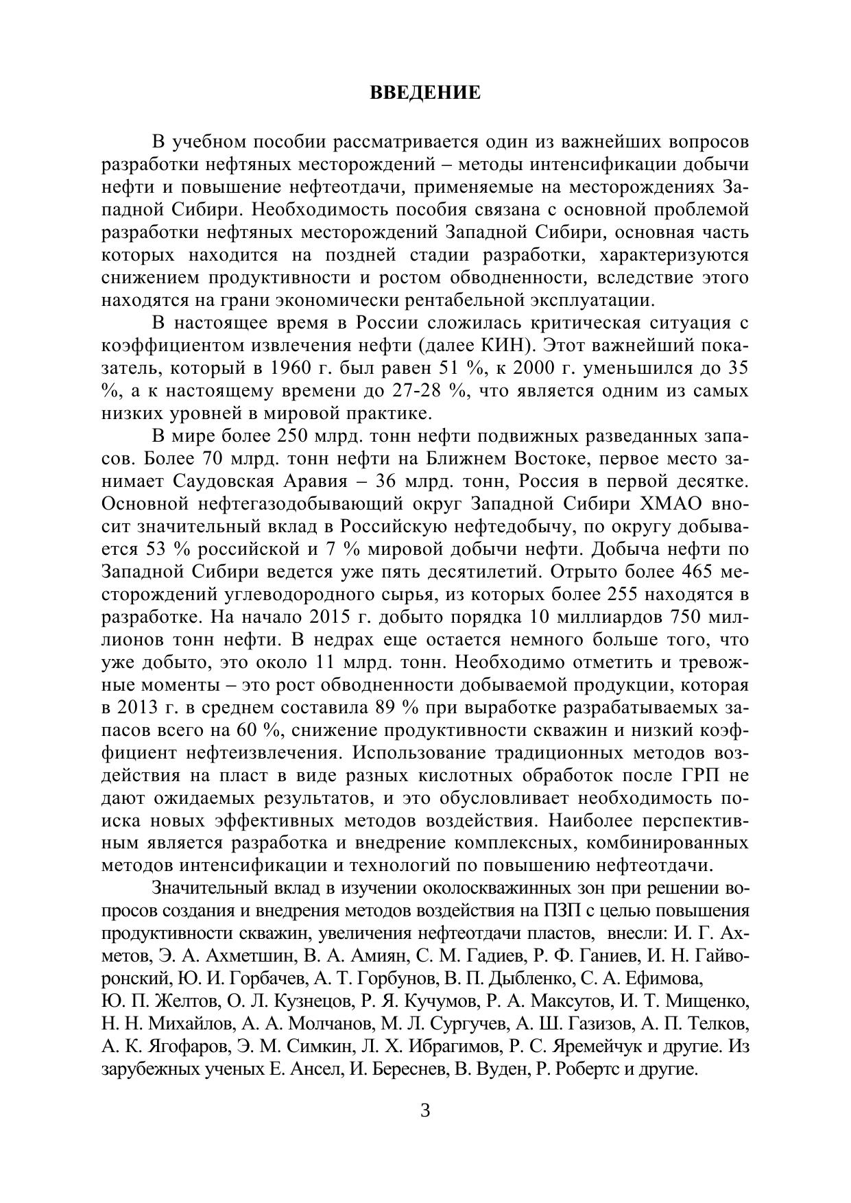 В учебном пособии рассматривается один из важнейших вопросов на текущей стадии разработки нефтяных месторождений Западной Сибири необходимость применения, краткий обзор и рекомендации по применению методов интенсификации добычи нефти и повышения нефтеотдачи. Актуальность этой проблемы связана с тем, что основные нефтяные месторождения в настоящее время находятся на поздней стадии разработки, характеризуются снижением продуктивности, повышением обводненности, ростом доли трудноизвлекаемых запасов, что в конечном итоге приводит к снижению нефтеотдачи пластов. Это создает необходимость проведения нефтяными компаниями множество методов увеличения притока нефти и повышения нефтеотдачи, основанных на физических, химических, тепловых, акустических, волновых и других принципах. С учетом условий эксплуатации месторождений в пособии расмотрены разработаные и внедренные методы интенсификации и технологии по повышению нефтеотдачи, выделены наиболее эффективные технологии, включая комплексные, сочетающие в себе физико-химическое, механическое и гидроволновое воздействия на призабойную зону пласта (ПЗП) и на обводненный продуктивный пласт.