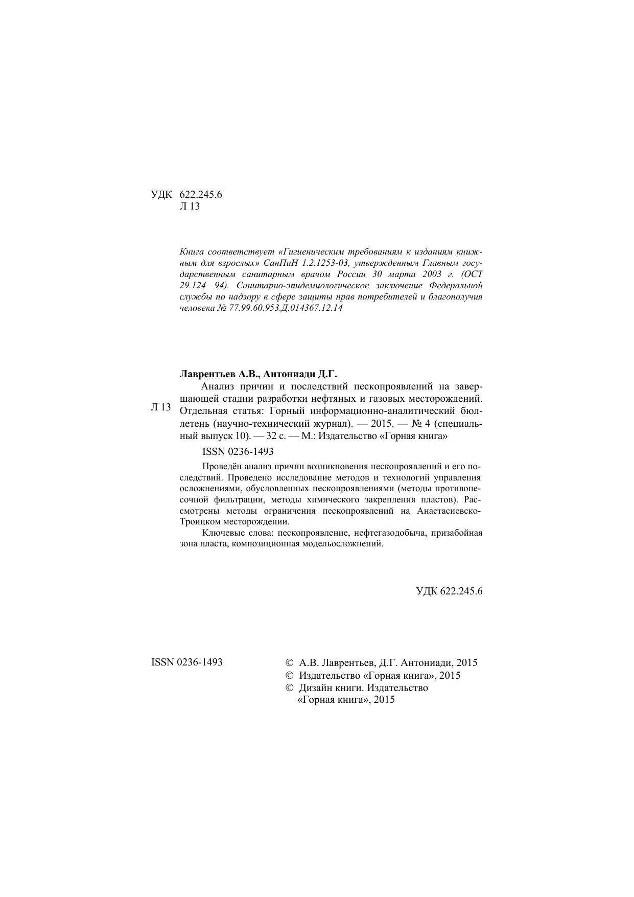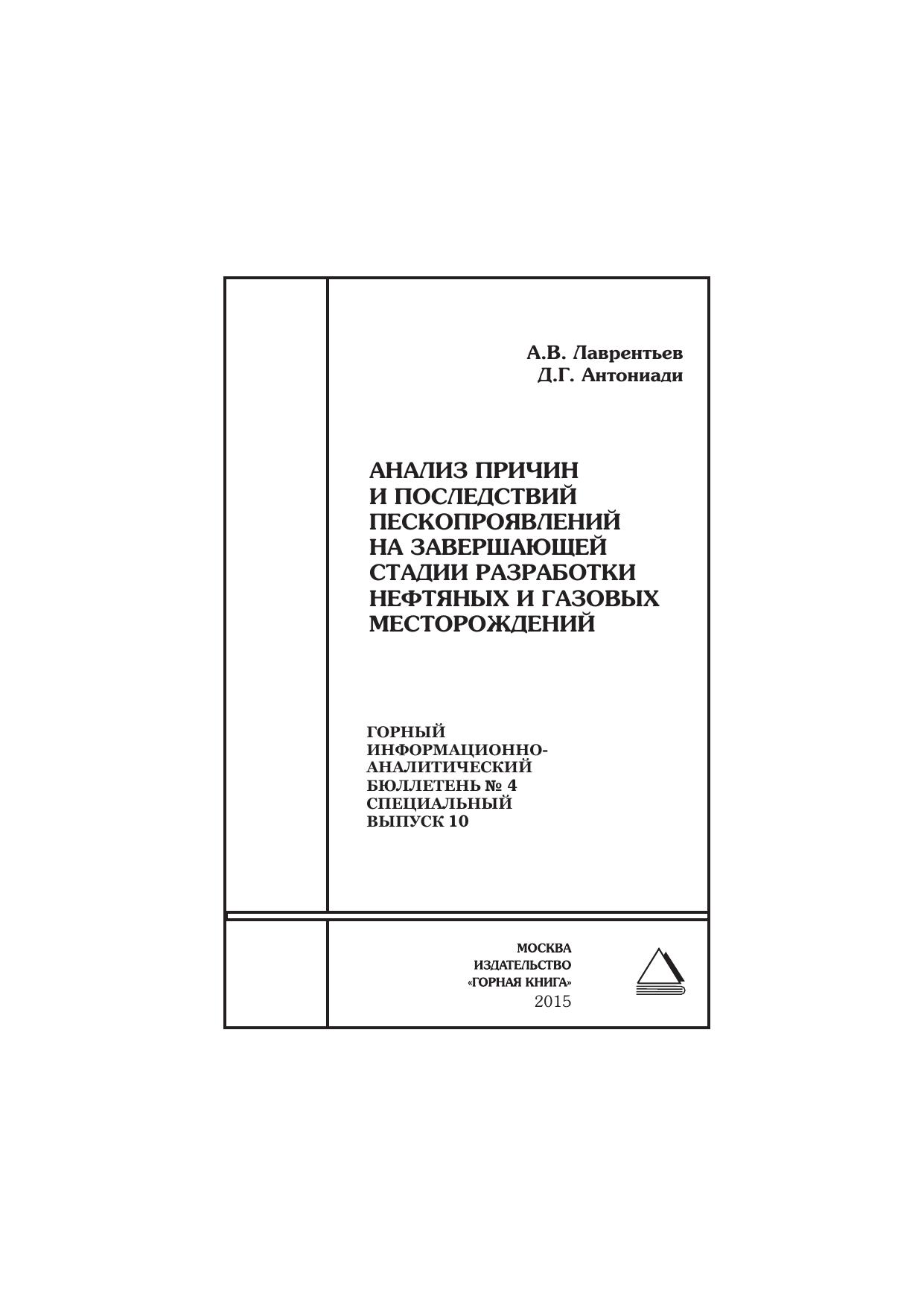 Анализ причин и последствий пескопроявлений на завершающей стадии разработки нефтяных и газовых месторождений. Отдельная статья: Горный информационно-аналитический бюллетень (научно-технический журнал)