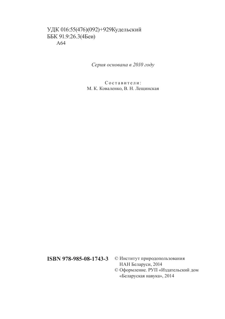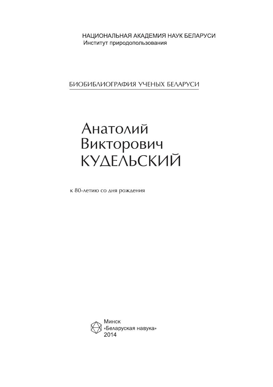 Отражены основные итоги научной, производственной и педагогической деятельности члена-корреспондента Национальной академии наук Беларуси, лауреата Государственной премии Республики Беларусь, доктора геолого-минералогических наук, профессора Анатолия Викторовича Кудельского. Рассчитана на научную общественность и всех, кто интересуется историей науки.
