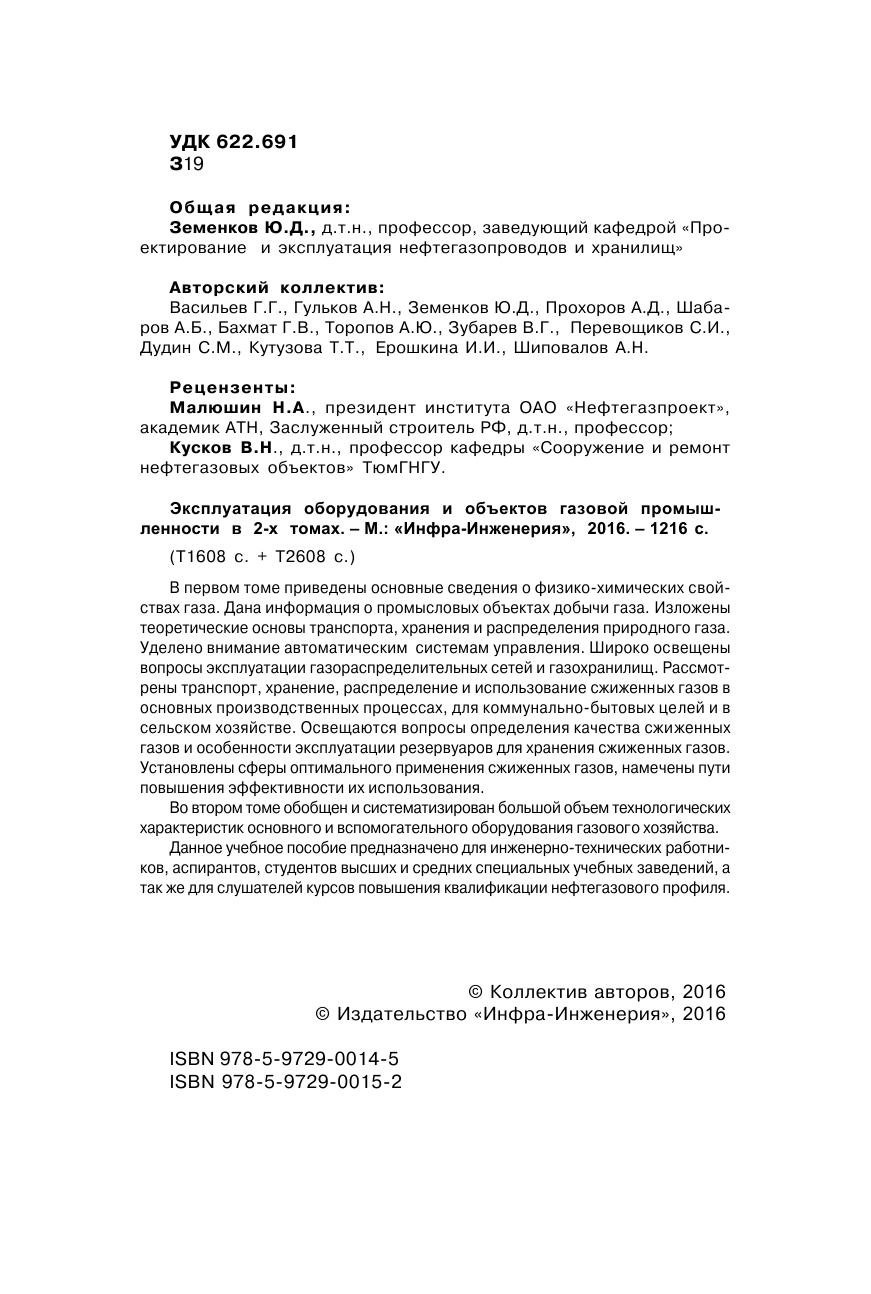 Во втором томе обобщен и систематизирован большой объем технологических характеристик основного и вспомогательного оборудования газового хозяйства. Данное учебное пособие предназначено для инженерно-технических работников, аспирантов, студентов высших и средних специальных учебных заведений, а так же для слушателей курсов повышения квалификации нефтегазового профиля.