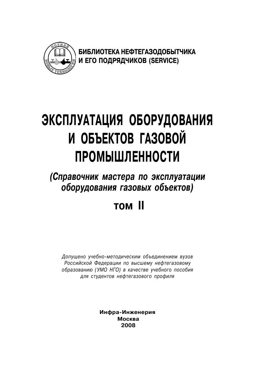 Эксплуатация оборудования и объектов газовой промышленности. Справочник мастера по эксплуатации оборудования газовых объектов. Т.2
