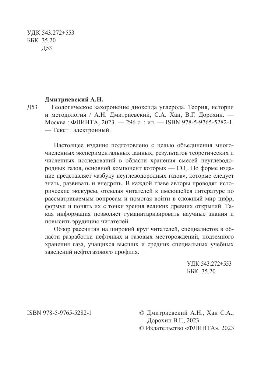 Настоящее издание подготовлено с целью объединения многочисленных экспериментальных данных, результатов теоретических и численных исследований в области хранения смесей неуглеводородных газов, основной компонент которых — СО2. По форме издание представляет «азбуку неуглеводородных газов», которые следует знать, развивать и внедрять. В каждой главе авторы проводят исторические экскурсы, отсылая читателей к имеющейся литературе по рассматриваемым вопросам и помогая войти в сложный мир цифр, формул и понять их с точки зрения великих древних открытий. Такая информация позволяет гуманитаризировать научные знания и повысить эрудицию читателей.