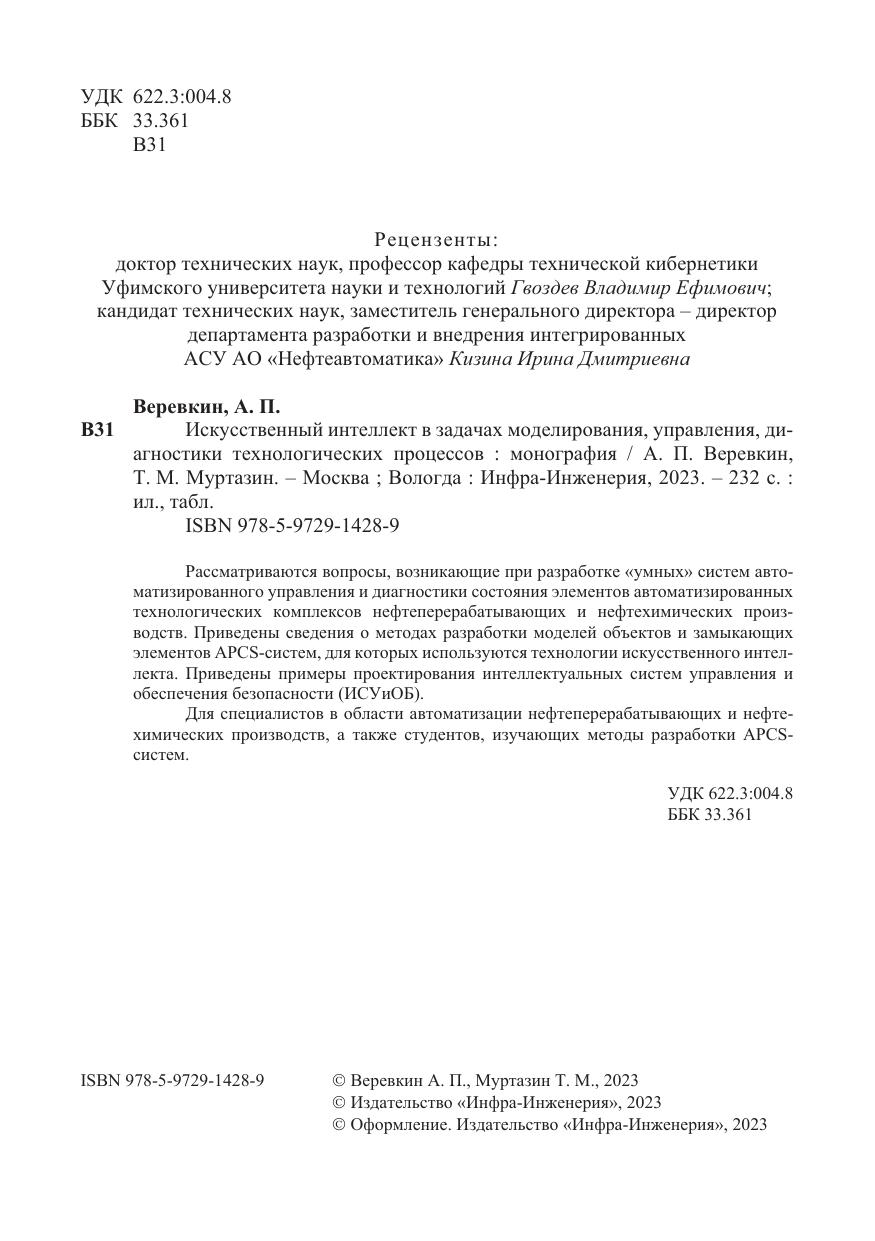 Искусственный интеллект в задачах моделирования, управления, диагностики технологических процессов