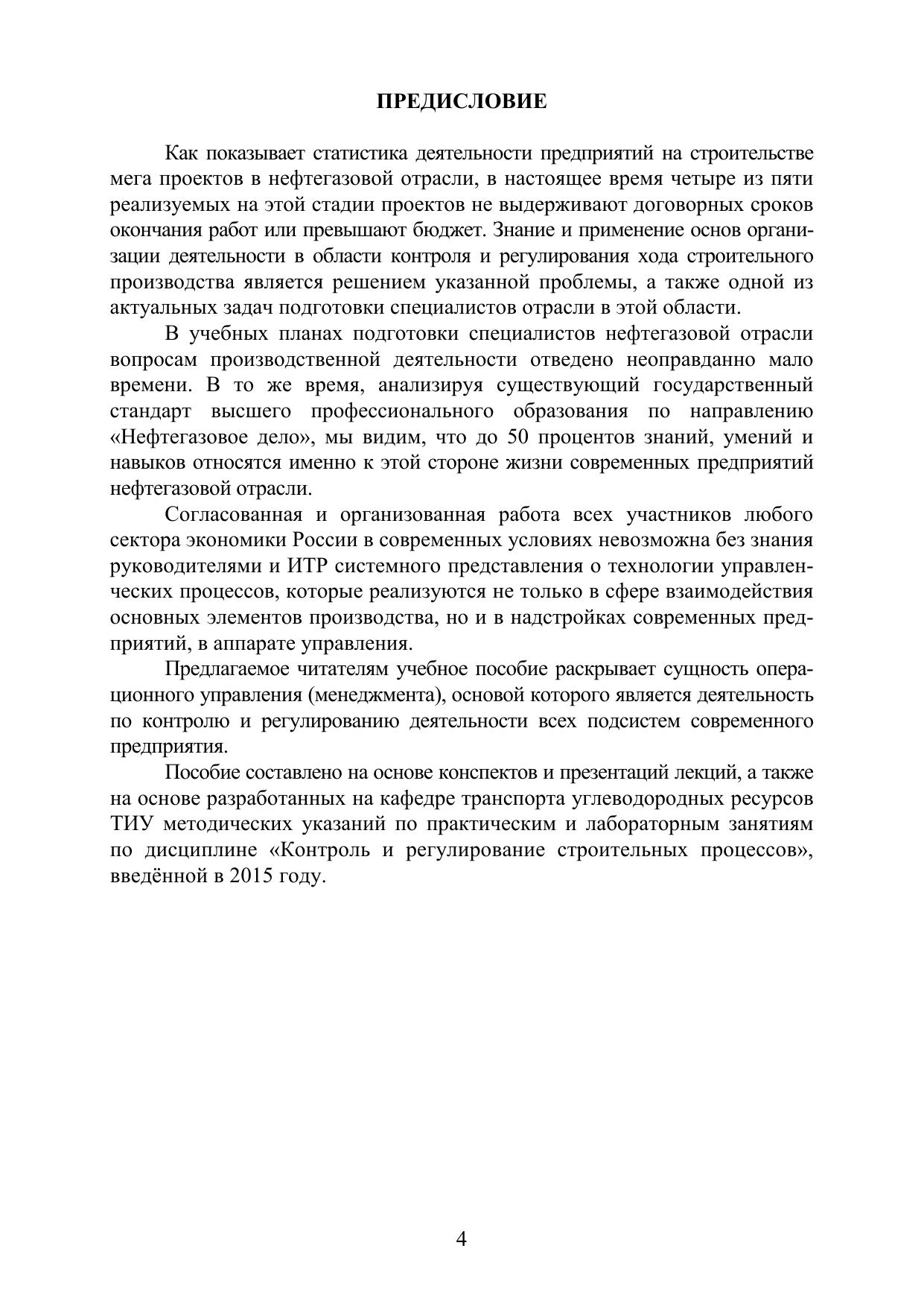 Учебное пособие составлено по материалам чтения лекций по дисциплине «Контроль и регулирование строительных процессов» для студентов по направлению подготовки «Нефтегазовое дело». Рассмотрена сущность двух важнейших функций управления современным производством - контроля и регулирования, их место в общей системе управления и организации производства, а также в системе концепции «Управление проектами». Раскрыты принципы, этапы и технологии реализации функций контроля и регулирования. Включено рассмотрение вопросов теории календарного планирования, методов разработки планов, без которых невозможна эффективная организация любого производства и решение практических вопросов контроля деятельности и её регулирования. Уделено внимание общей технологии принятия решений, её этапам, влияющим факторам и осуществляемым при этом управленческим операциям. Приведён набор тем практических и лабораторных занятий, позволяющих приобрести некоторые навыки и умения, закрепляющих знания, полученные в ходе теоретических занятий и самостоятельной работы студентов.