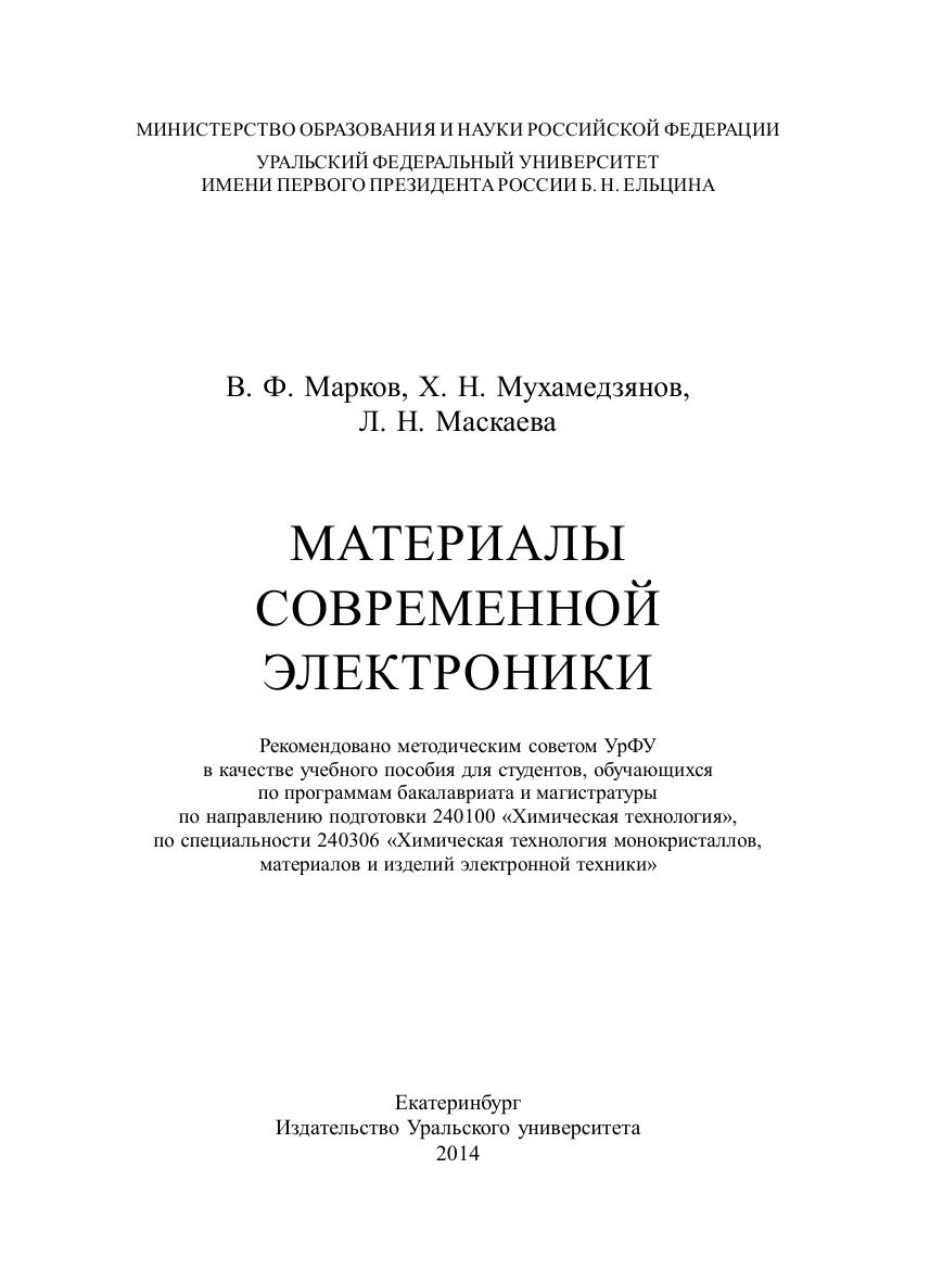 Представлены общие сведения о материалах, используемых в современной электронике, и физике явлений, происходящих в проводниковых, полупроводниковых, диэлектрических и магнитных материалах. Рассмотрены электрические и магнитные свойства материалов. Показаны технологии производства важнейших материалов и их применение. Изложены физические принципы, положенные в основу материалов и технологий наноэлектроники. Пособие предназначено для студентов вузов, специализирующихся в области химической технологии материалов и изделий электронной техники.