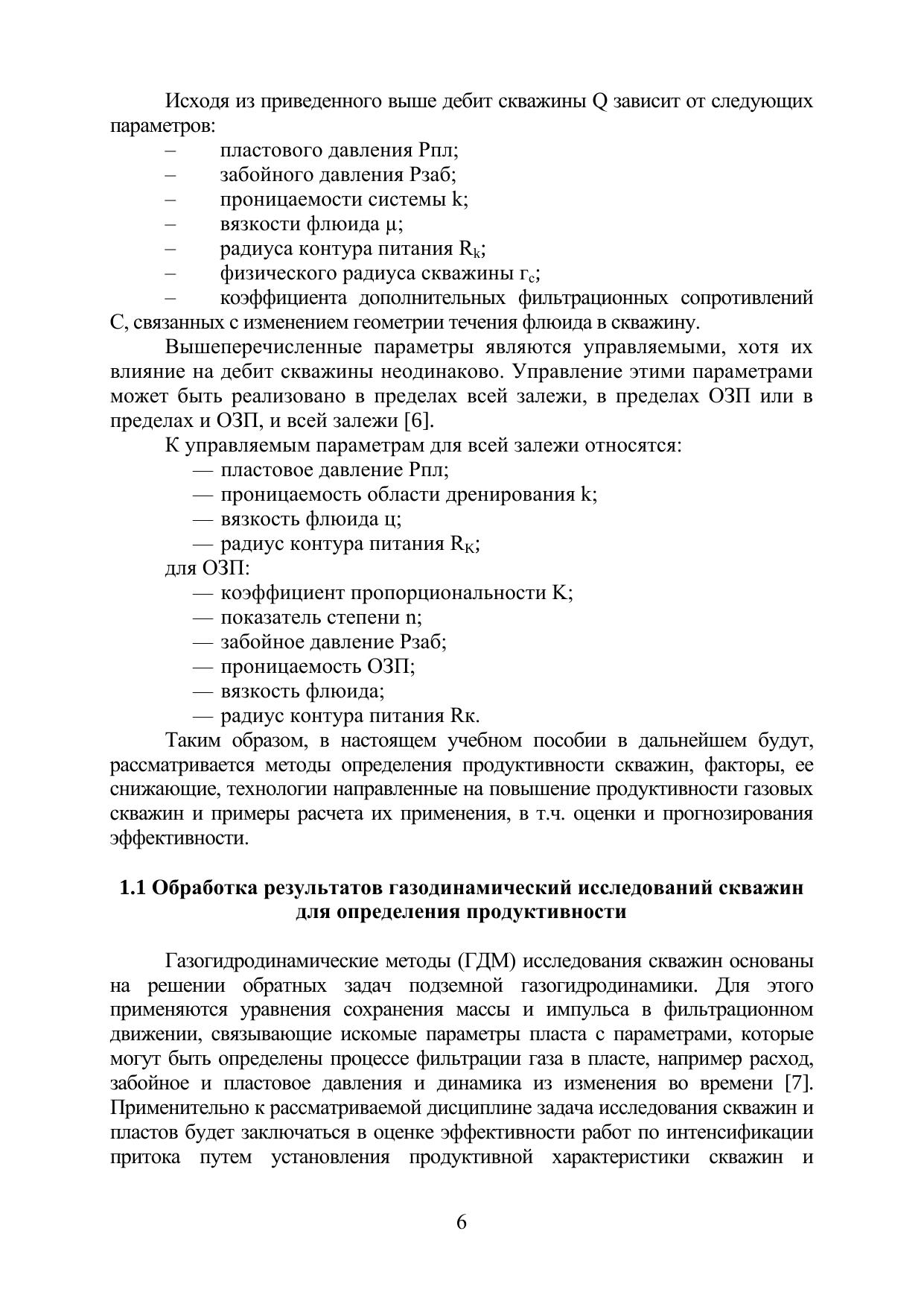 Учебное пособие по дисциплине «Методы и технологии повышения продуктивности скважин» предназначено для изучения теоретического курса дисциплины согласно ФГОС ВО +++ для направления специалитета: 21.05.06 Нефтегазовые техника и технологии, бакалавриата: 21.03.01 Нефтегазовое дело. В учебном пособии изложены методы определения продуктивности газовых скважин, основные методы и технологии ее повышения, расчета эффективности применения рассмотренных методов. Приведенные примеры задач, различные расчетные варианты позволят обучающимся в полной мере получение представления о физических процессах, происходящих при использовании рассматриваемых методов и характере их влияния на продуктивность газовых скважин.