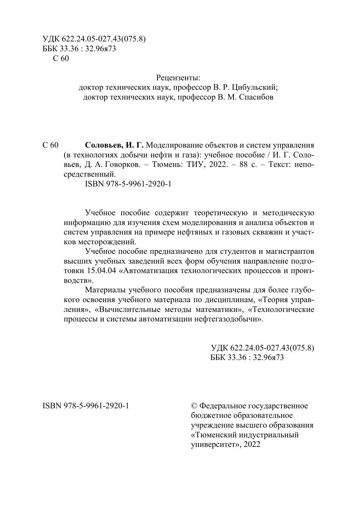 Моделирование объектов и систем управления (в технологиях добычи нефти и газа)