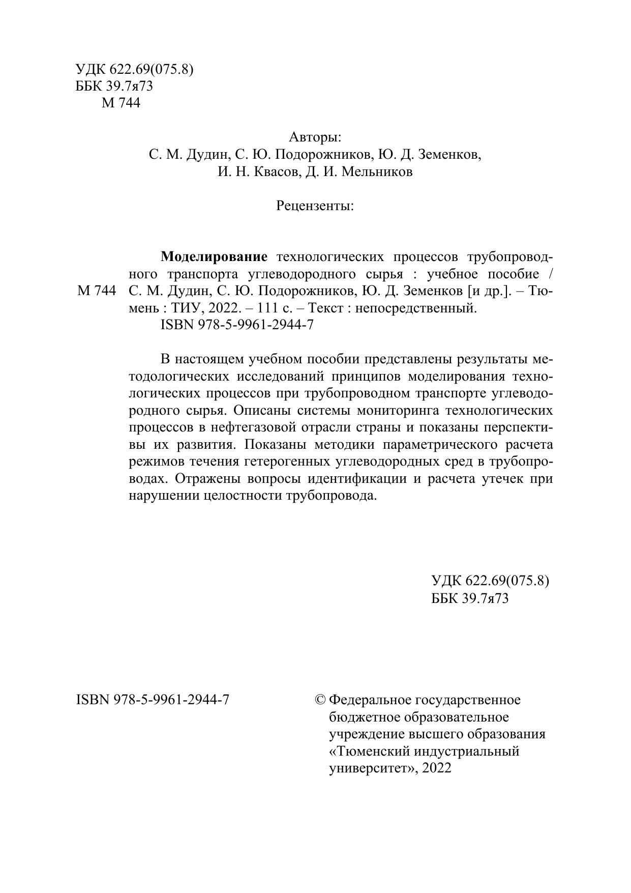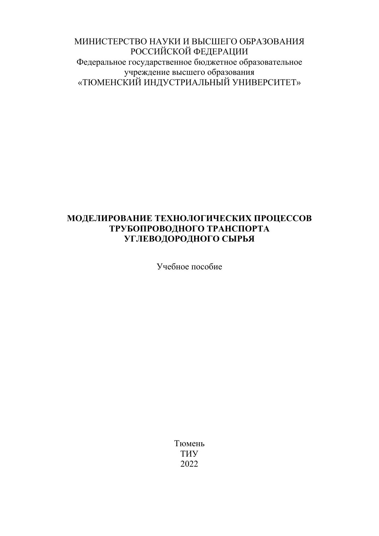 В настоящем учебном пособии представлены результаты методологических исследований принципов моделирования технологических процессов при трубопроводном транспорте углеводородного сырья. Описаны системы мониторинга технологических процессов в нефтегазовой отрасли страны и показаны перспективы их развития. Показаны методики параметрического расчета режимов течения гетерогенных углеводородных сред в трубопроводах. Отражены вопросы идентификации и расчета утечек при нарушении целостности трубопровода.