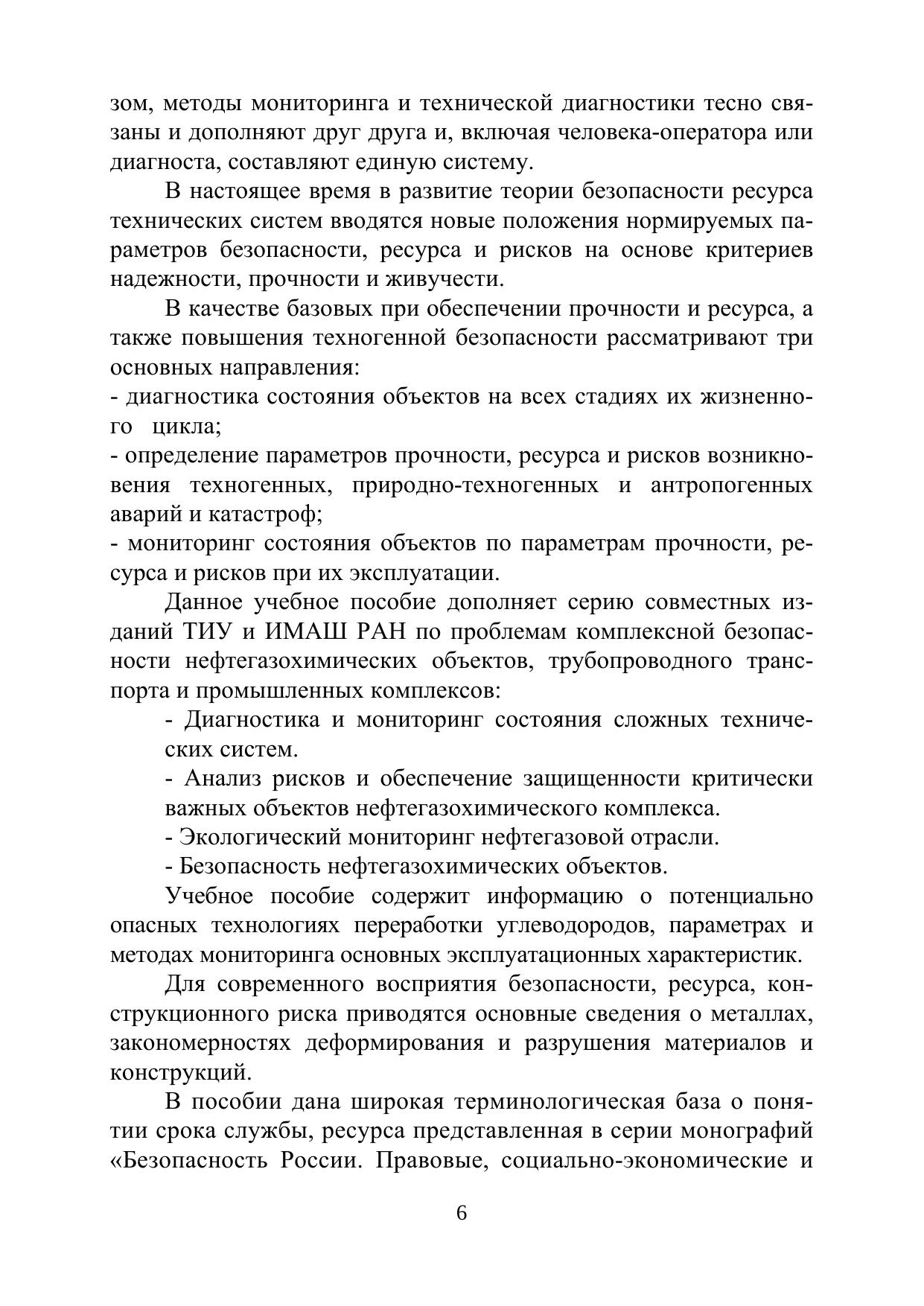 В учебном пособии рассмотрены научно-методические основы мониторинга потенциально опасных технологий и производств нефтегазохимического комплекса. Приведены основные физико-механические характеристики материалов для изготовления сосудов, аппаратов, технических устройств и строительных конструкций. Представлены терминологическая база срока службы, ресурса машин, оборудования, объектов инфраструктуры, методы и система мониторинга состояния, ресурса и рисков. Показан нормативный материал по обеспечению безопасности технических устройств, зданий и сооружений, а также система мониторинга и измерений в области промышленной безопасности, охраны труда и окружающей среды. Учебное пособие предназначено для студентов, обучающихся по направлениям «Техносферная безопасность», аспирантов и слушателей повышения квалификации, преподавателей вузов.