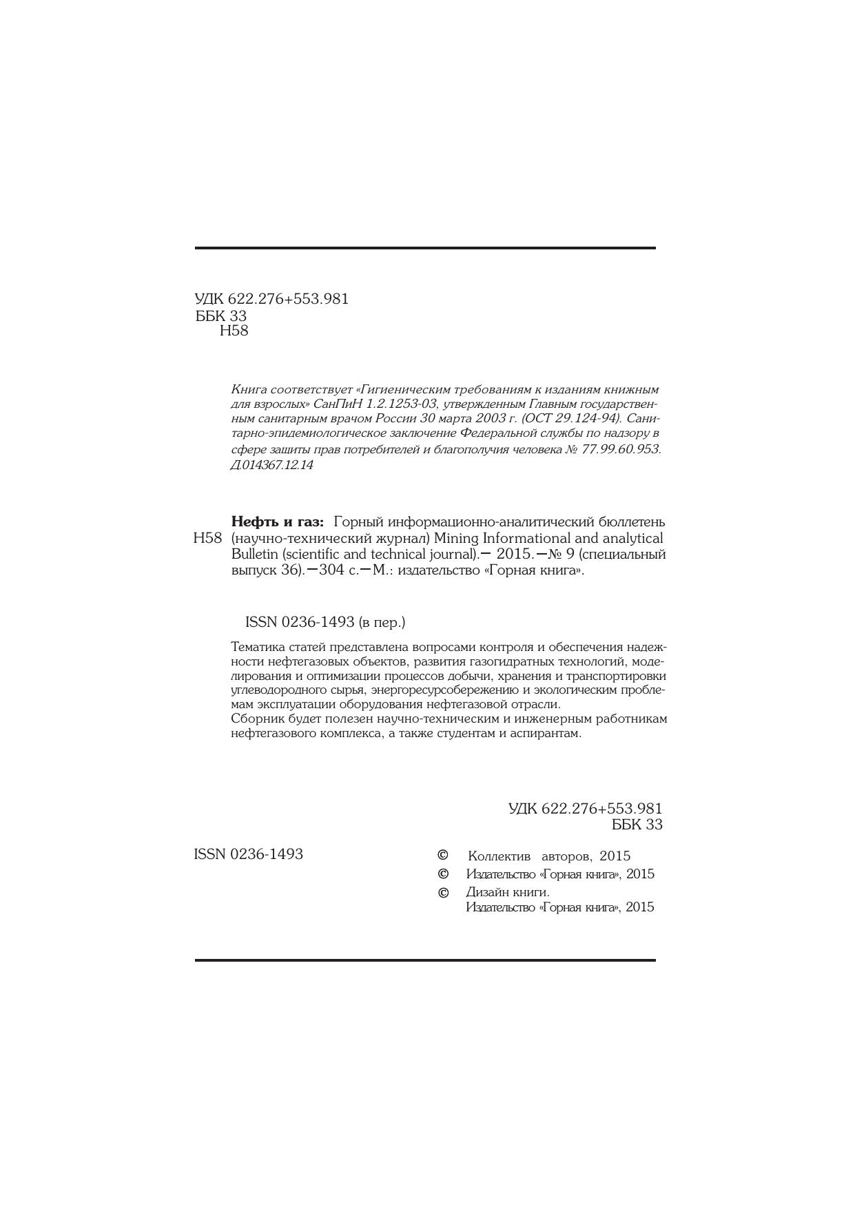 Нефть и газ: Горный информационно-аналитический бюллетень (научно-технический журнал) Mining Informational and Analytical Bulletin (Scientific and Technical Journal)