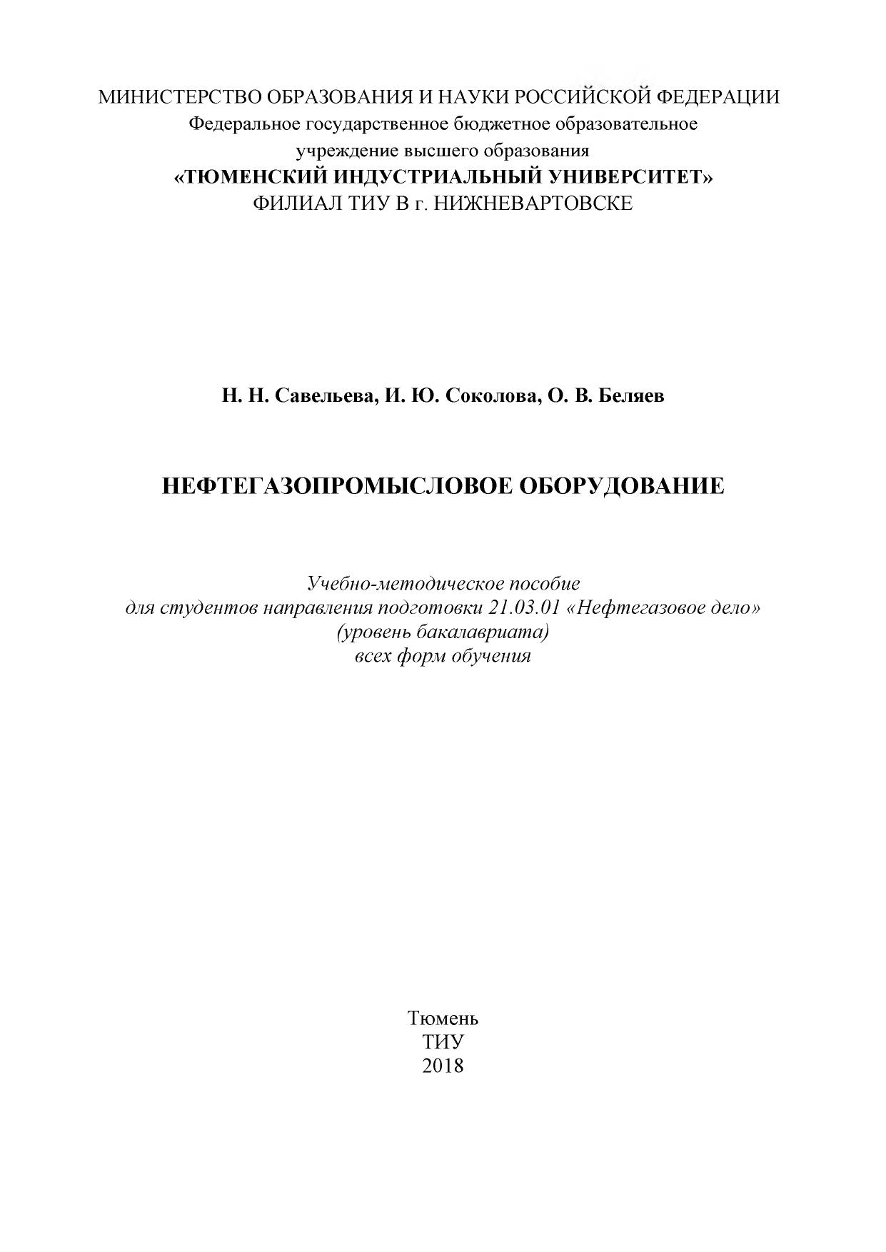 Учебно-методическое пособие предназначено в качестве изучения теоретического материала при изучении дисциплины «Нефтегазопромысловое оборудование» для обучающихся очной и заочной форм обучения направлений подготовки бакалавров ВО 21.03.01. «Нефтегазовое дело».