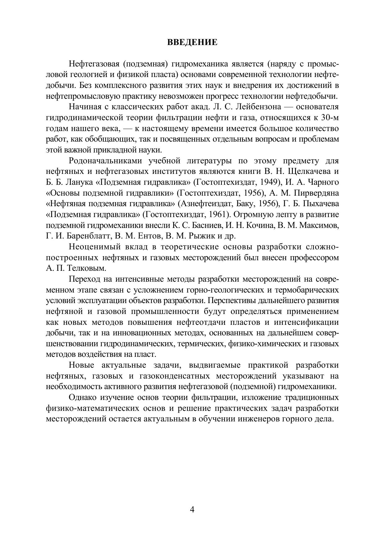 В учебном пособии кратко изложены основные положения гидродинамической теории установившейся и неустановившейся фильтрации однородных и неоднородных жидкостей в пористых средах, связанных с современными задачами разработки нефтяных и газовых месторождений. Приведены формулы для расчетов задач, которые можно использовать при проектировании нефтяных и газовых месторождений, решении различных проблем гидротехники, инженерной геологии, гидрогеологии и горного дела. Учебное пособие представлено в виде разделов. К каждому разделу подобраны задачи для самостоятельного решения с целью полного усвоения теоретического материла. Предназначено для бакалавров и магистрантов, обучающихся на инженерных специальностях и находящихся на очном, заочном, очно-заочном и дистанционном обучении.