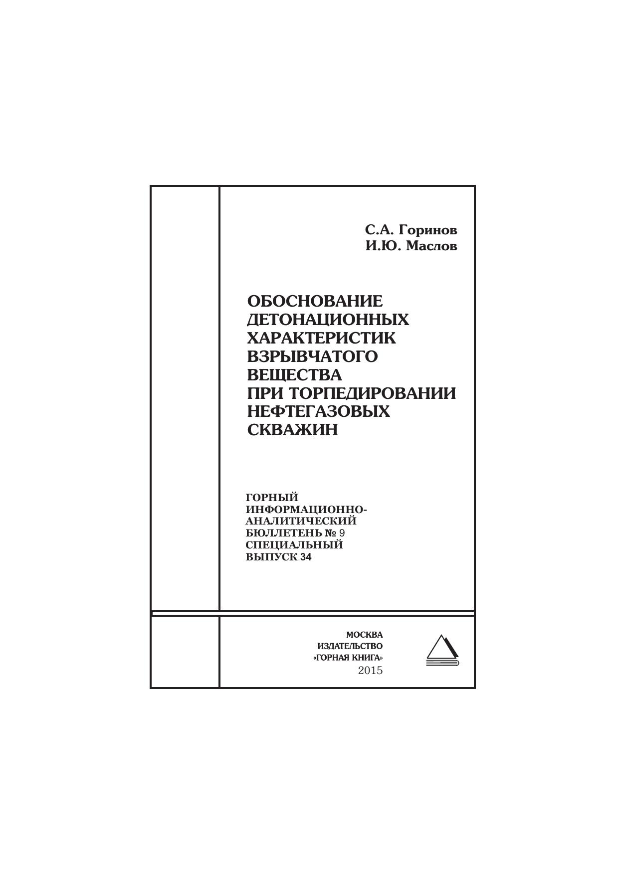 Обоснование детонационных характеристик взрывчатого вещества при торпедировании нефтегазовых скважин. Отдельные статьи: Горный информационно-аналитический бюллетень (научно-технический журнал)