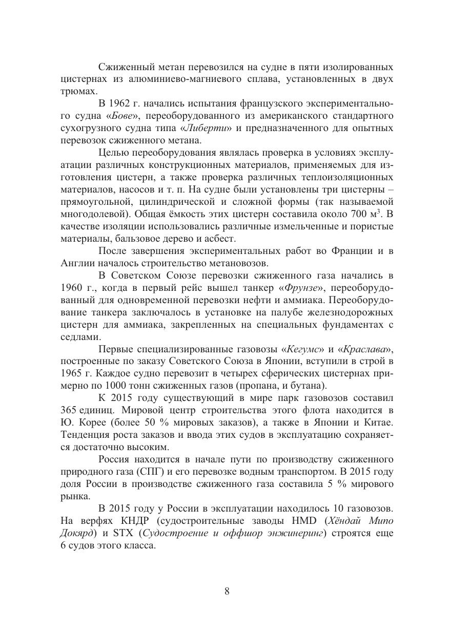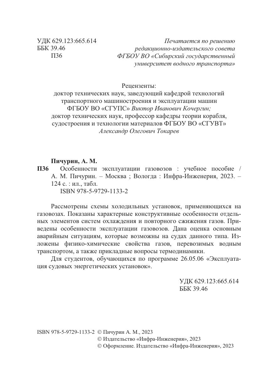 Рассмотрены схемы холодильных установок, применяющихся на газовозах. Показаны характерные конструктивные особенности отдельных элементов систем охлаждения и повторного сжижения газов. Приведены особенности эксплуатации газовозов. Дана оценка основным аварийным ситуациям, которые возможны на судах данного типа. Изложены физико-химические свойства газов, перевозимых водным транспортом, а также прикладные вопросы термодинамики.