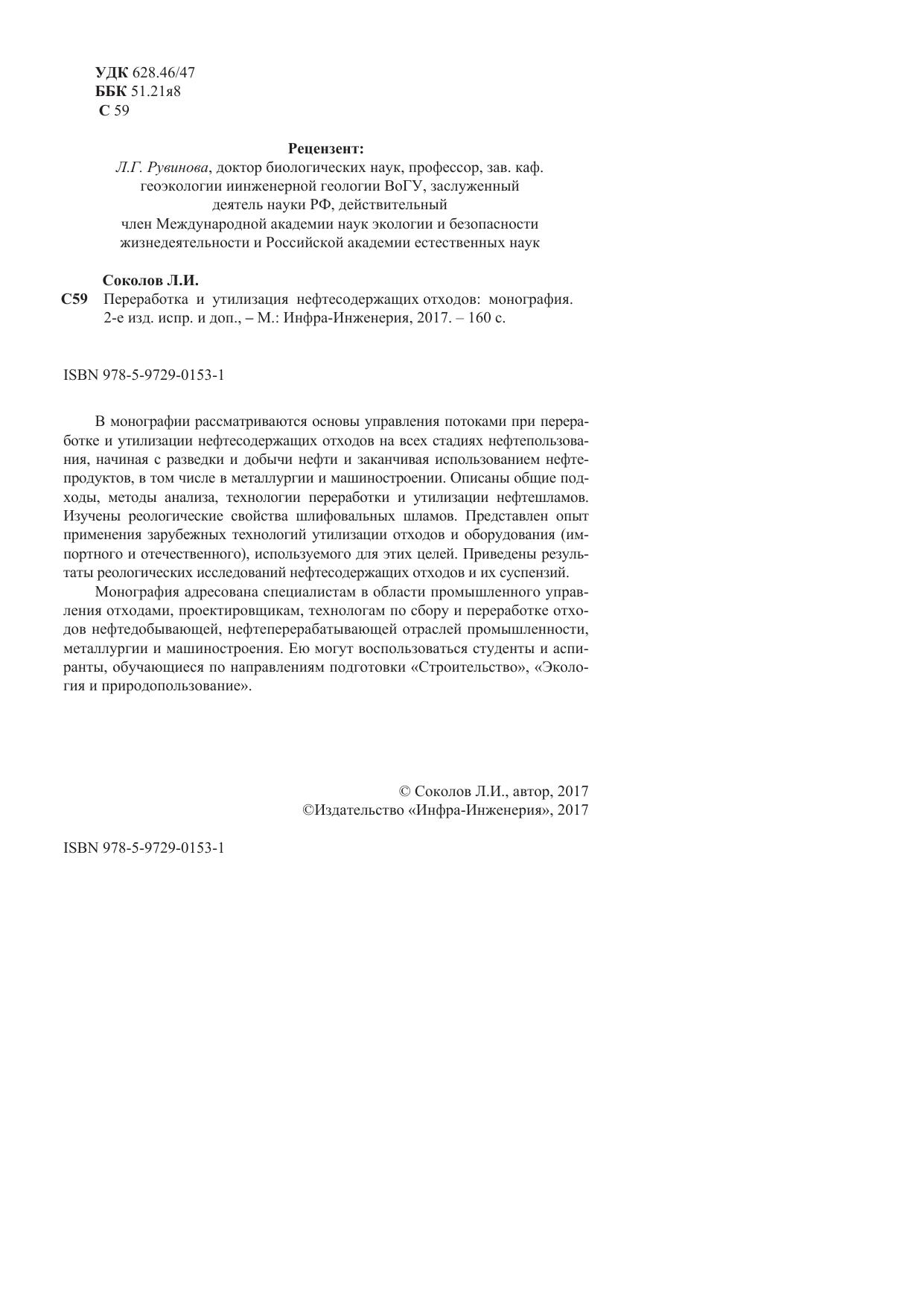 В монографии рассматриваются основы управления потоками при переработке и утилизации нефтесодержащих отходов на всех стадиях нефтепользова-ния, начиная с разведки и добычи нефти и заканчивая использованием нефтепродуктов, в том числе в металлургии и машиностроении. Описаны общие подходы, методы анализа, технологии переработки и утилизации нефтешламов. Изучены реологические свойства шлифовальных шламов. Представлен опыт применения зарубежных технологий утилизации отходов и оборудования (импортного и отечественного), используемого для этих целей. Приведены результаты реологических исследований нефтесодержащих отходов и их суспензий.