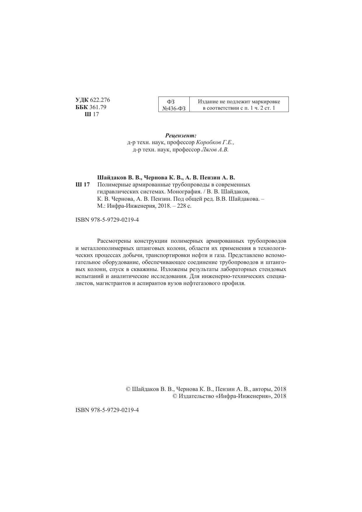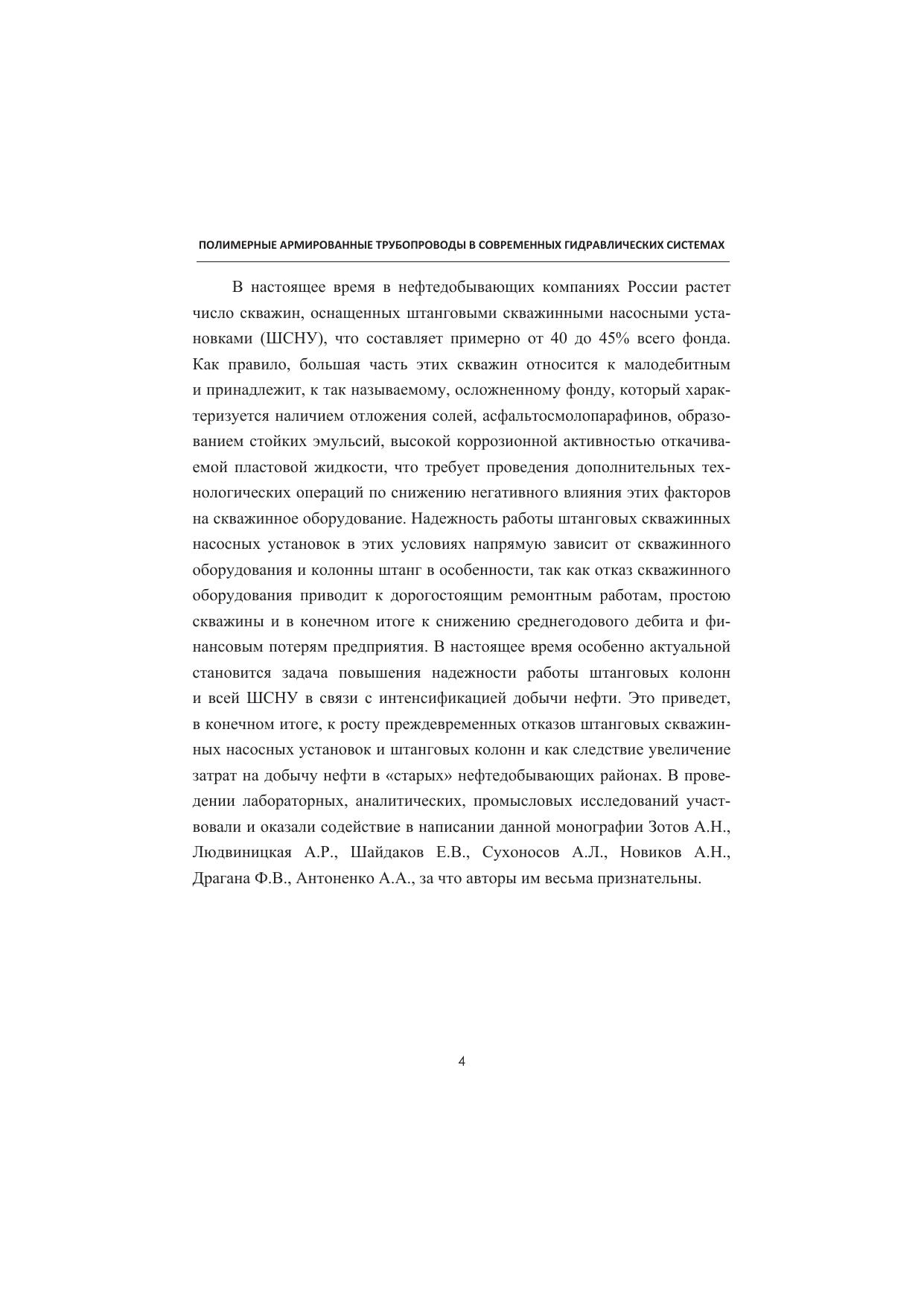 Рассмотрены конструкции полимерных армированных трубопроводов и металлополимерных штанговых колонн, области их применения в технологических процессах добычи, транспортировки нефти и газа. Представлено вспомогательное оборудование, обеспечивающее соединение трубопроводов и штанговых колонн, спуск в скважины. Изложены результаты лабораторных стендовых испытаний и аналитические исследования.